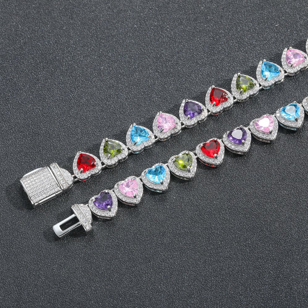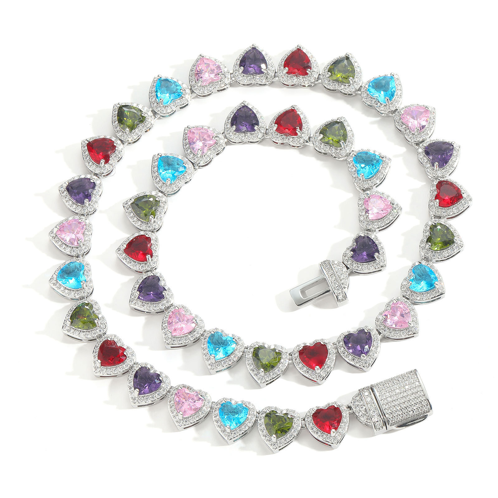 10mm love necklace inlaid with colored zircon 18K gold electroplated personality heart-shaped hip-hop necklace
