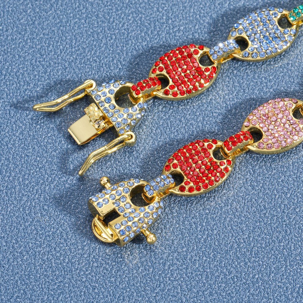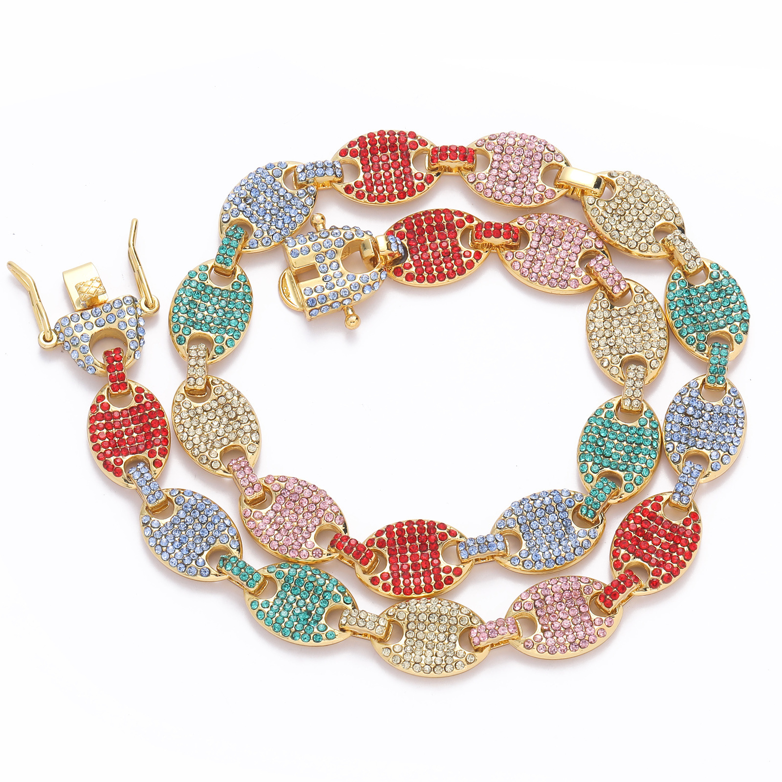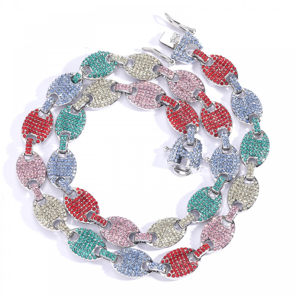 12mm colorful diamond full pig nose chain fashion hiphop alloy necklace