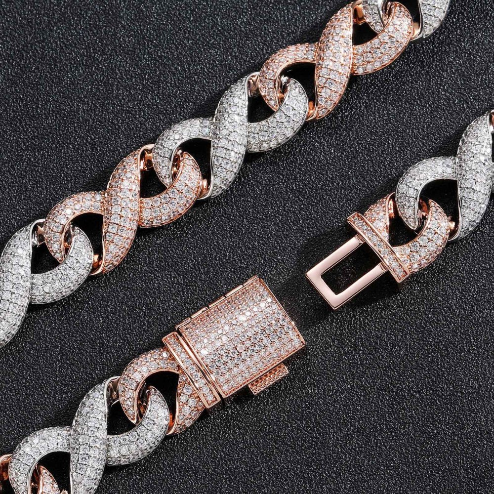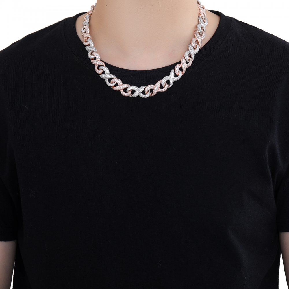 15mm 8-character Cuban chain rose gold two-tone full diamond micro-inlaid zircon trendy hip-hop
