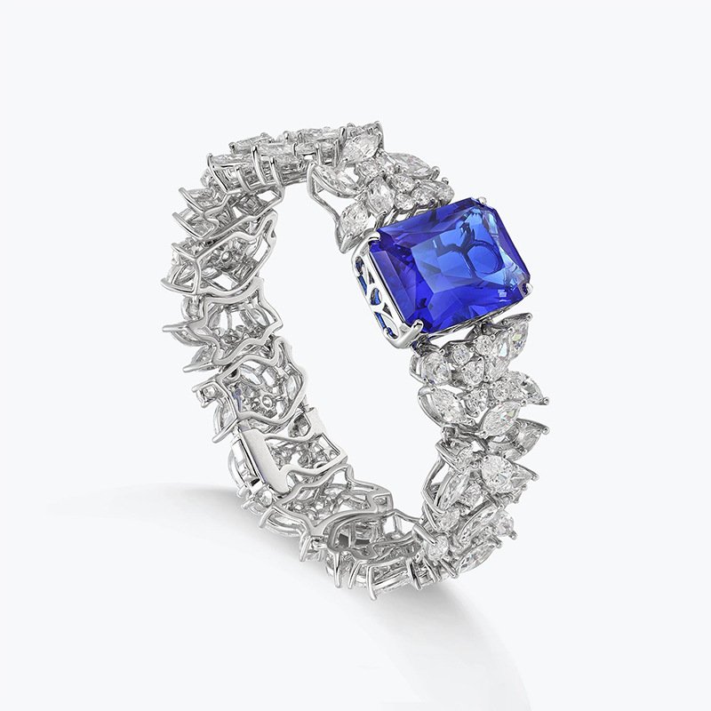 925 Silver European and American Creative Cultivated Emerald Cutting Craft Royal Blue Bracelet