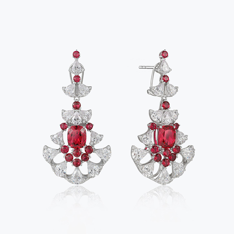 925 silver synthetic zircon earrings high-end luxury inlaid pigeon blood red earrings light luxury style earrings
