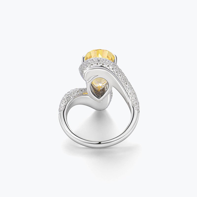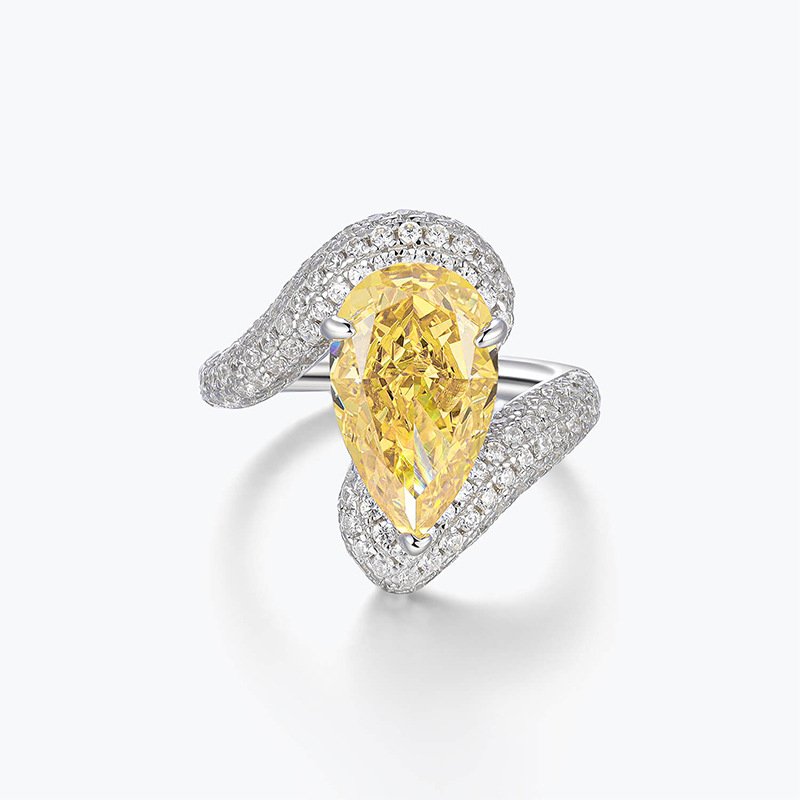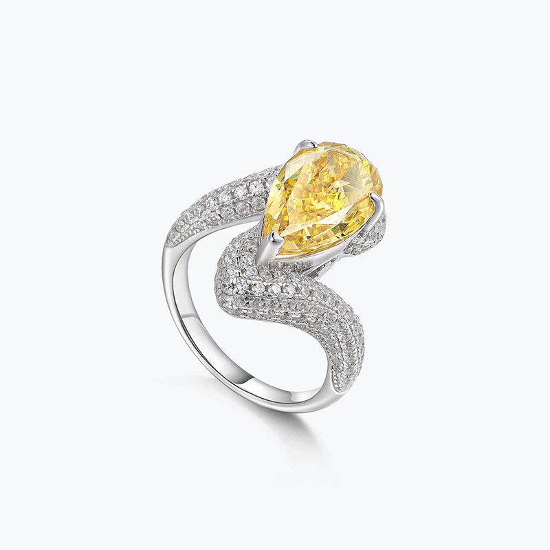 925 sterling silver luxury atmosphere fashionable vivid yellow ring inlaid with imported high carbon diamond high-grade female