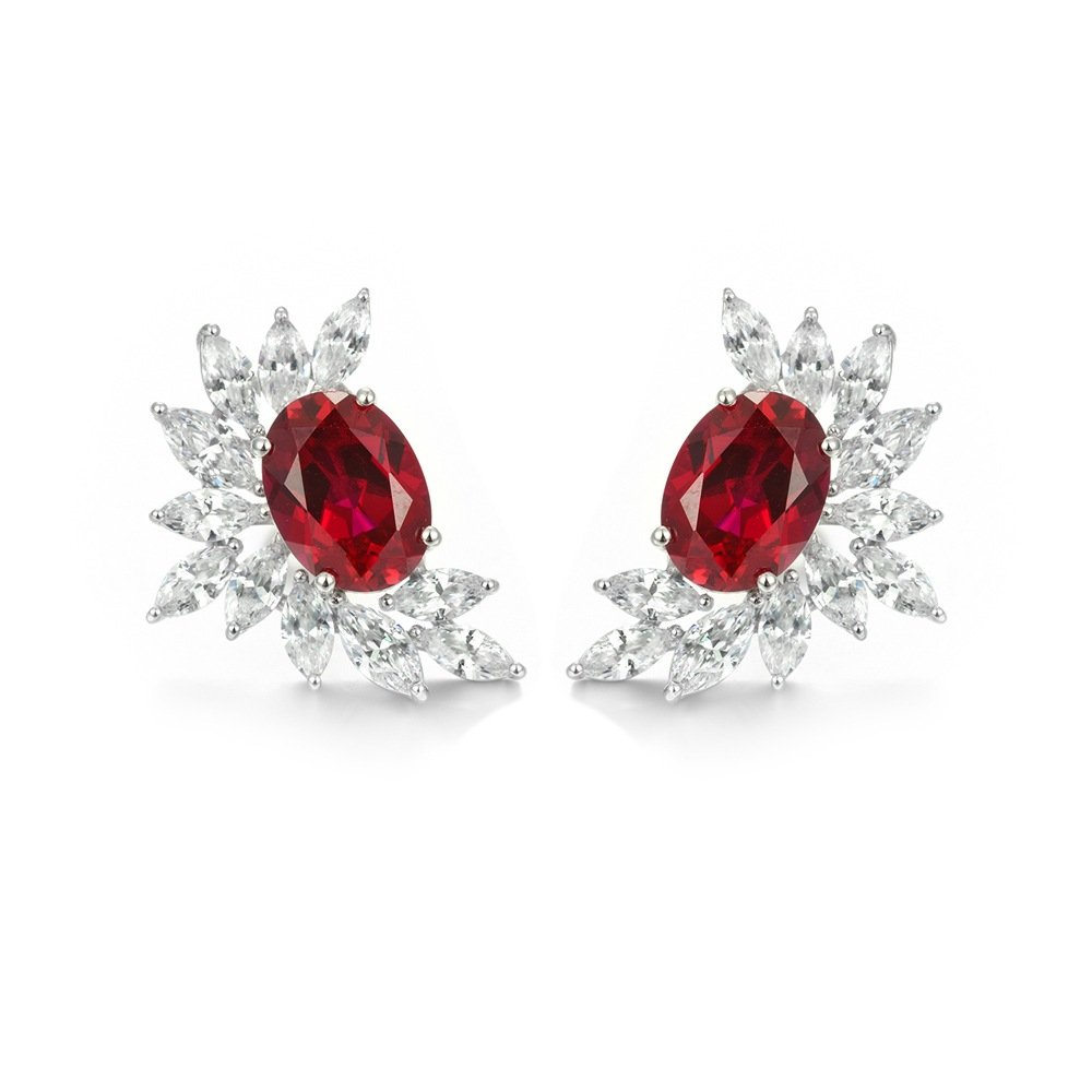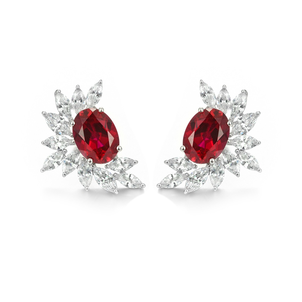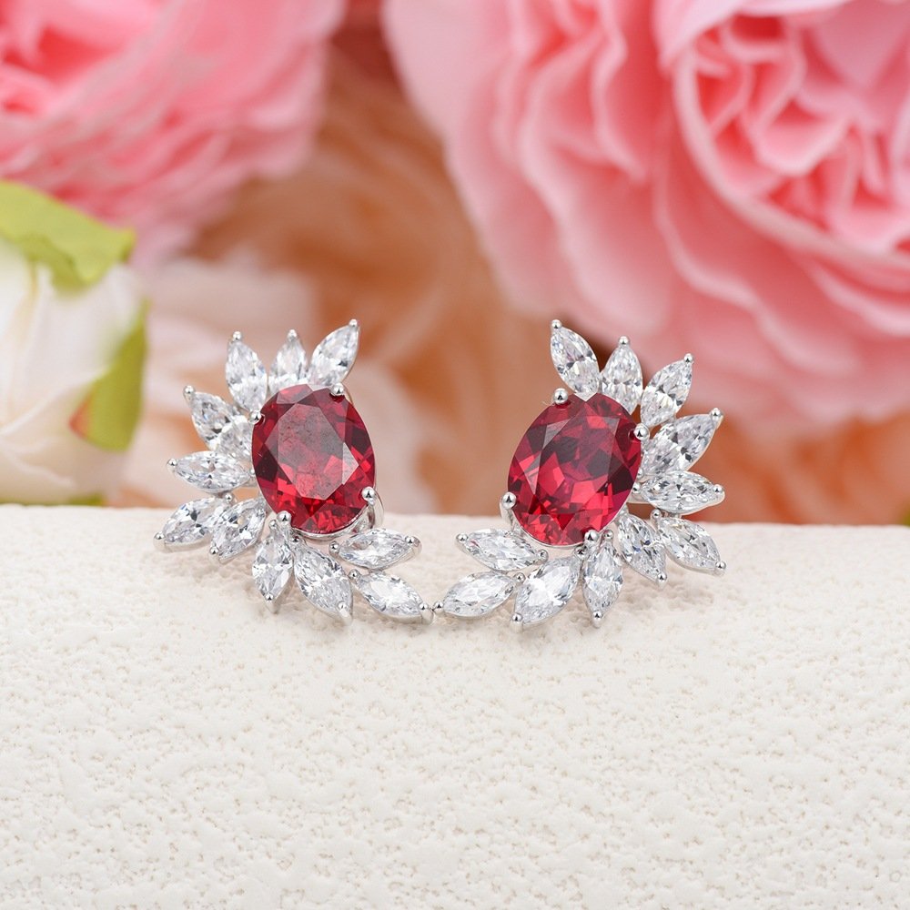 Angel Wings Shaped Cultivated Pigeon Blood Red Colored Gemstone Women's Earrings S925 Silver Earrings