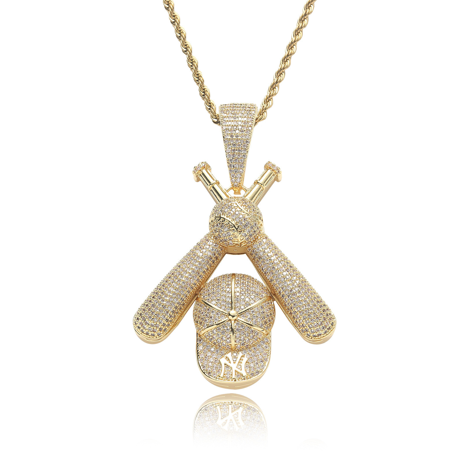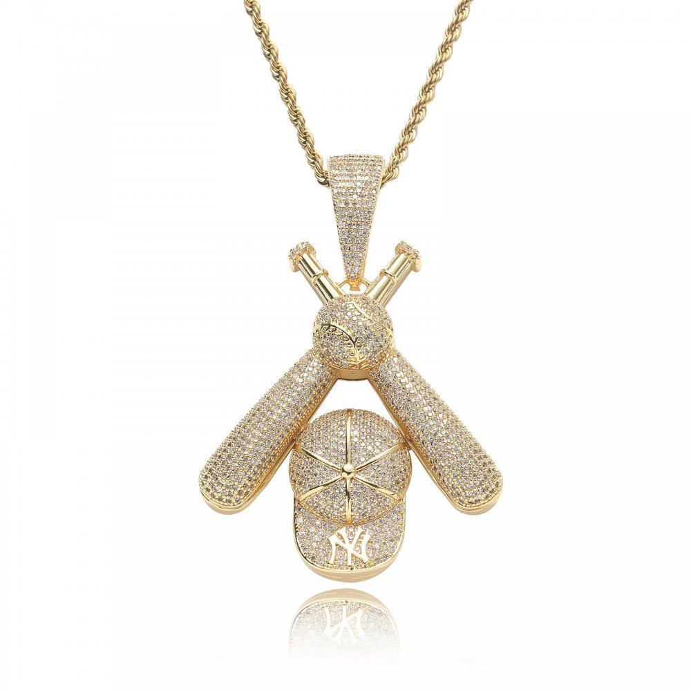 Baseball cap pendant micro inlaid zircon necklace hip hop 18k gold personality trend men hip hop jewelry