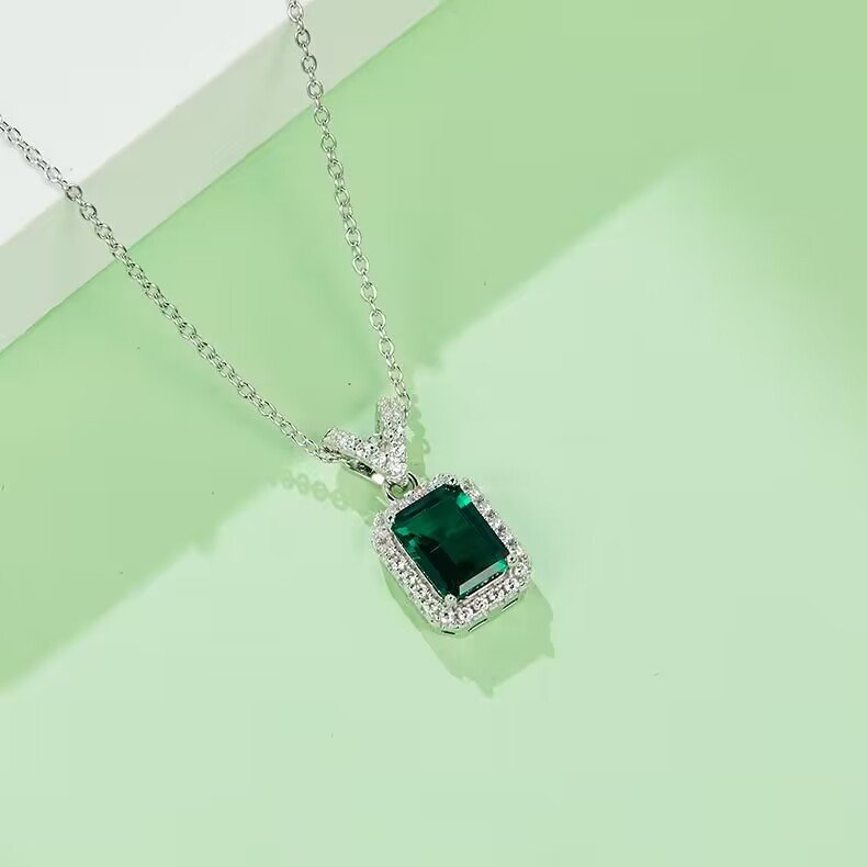 Best Jewelry S925 Silver Luxury Vintage Small Octagon Cultivated Emerald Fashion Simple Necklace