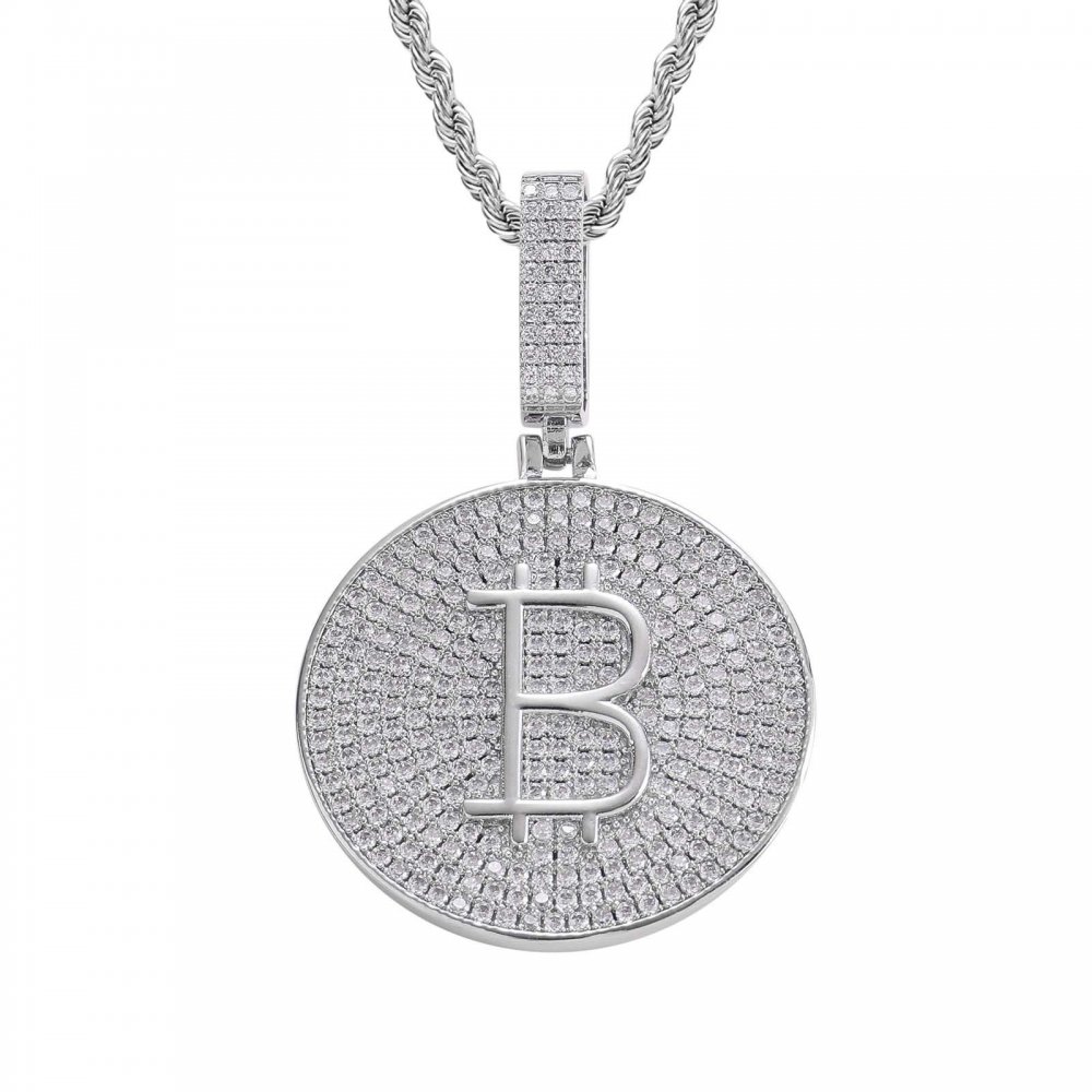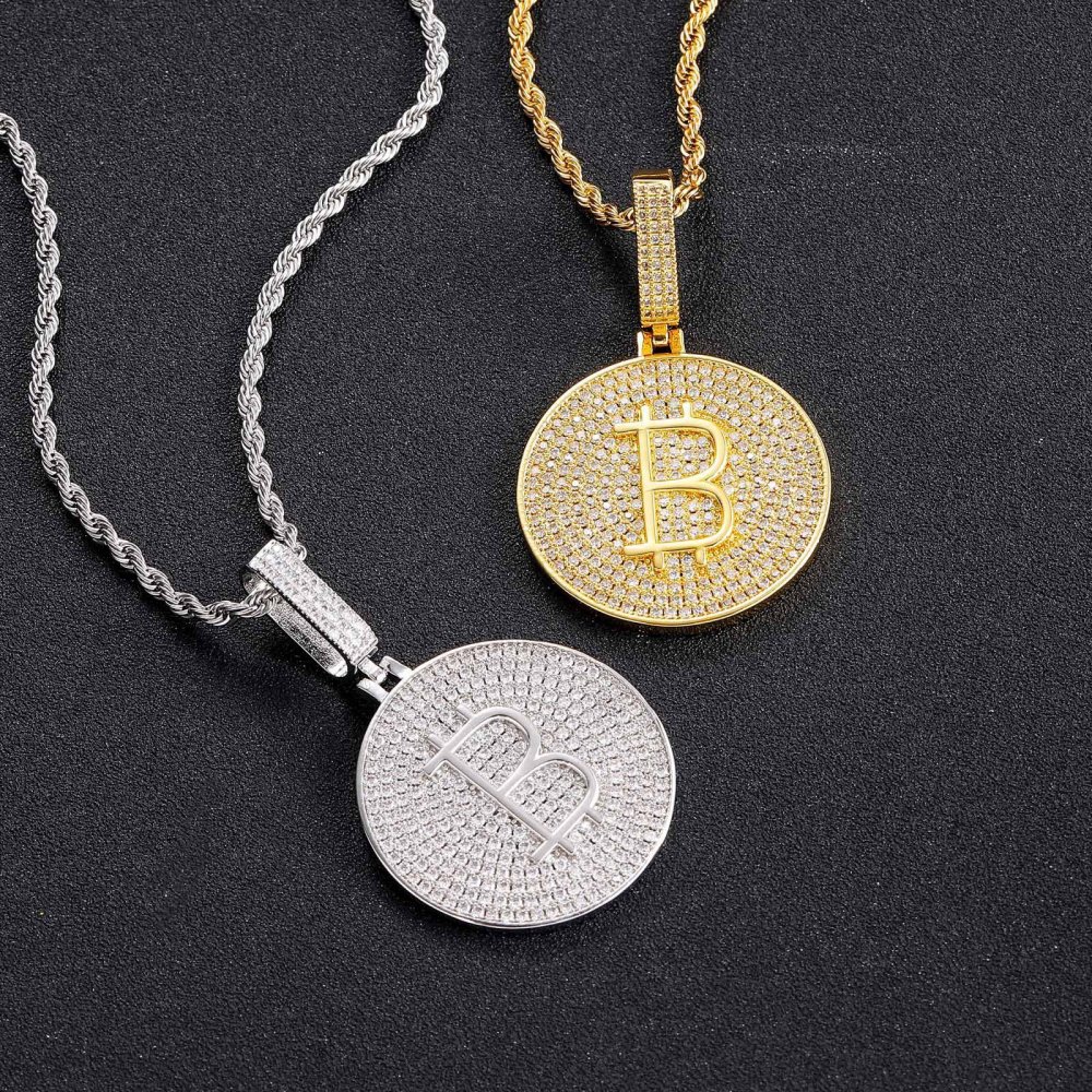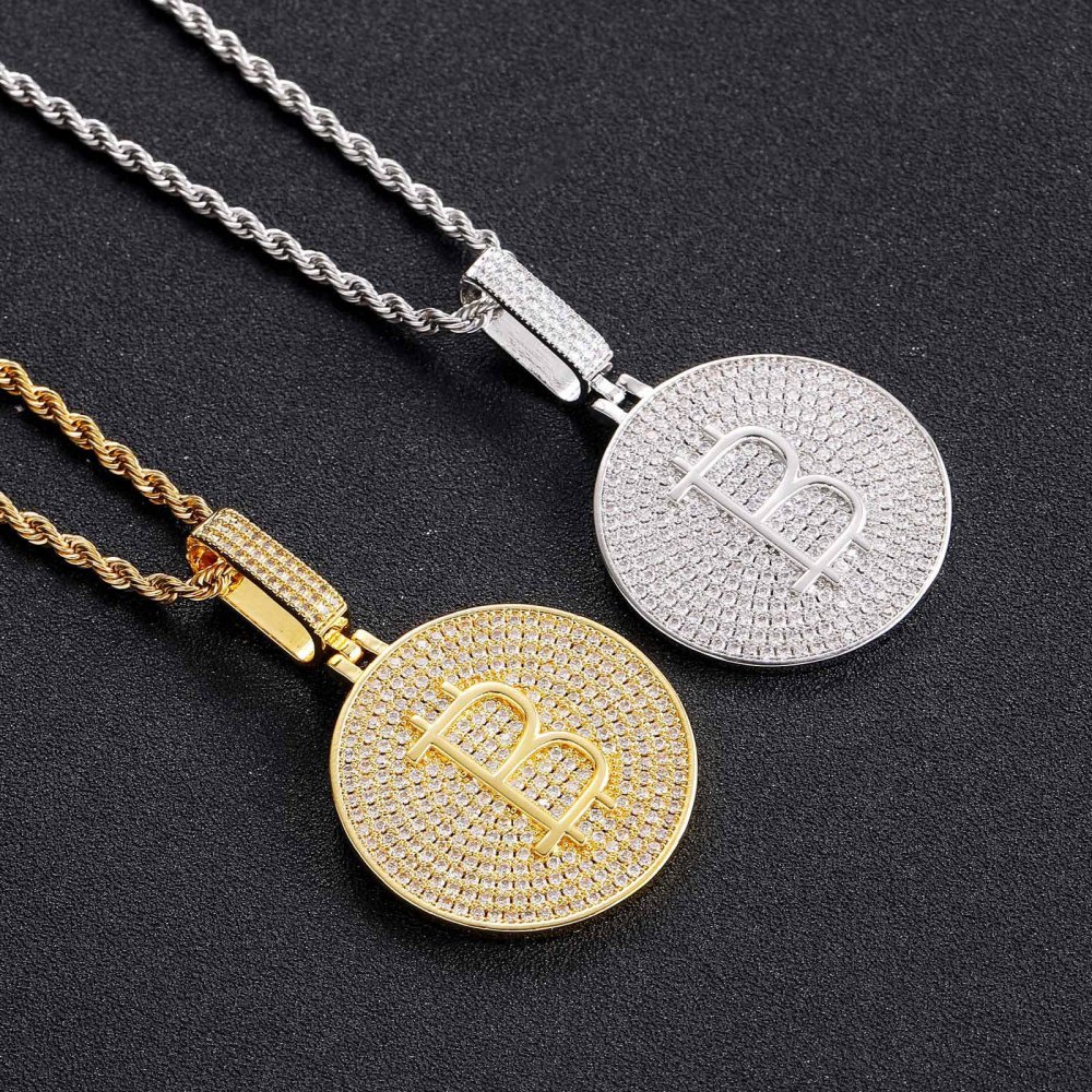 Bitcoin pendant copper micro-inlaid zircon solid polished men's personality hip-hop jewelry