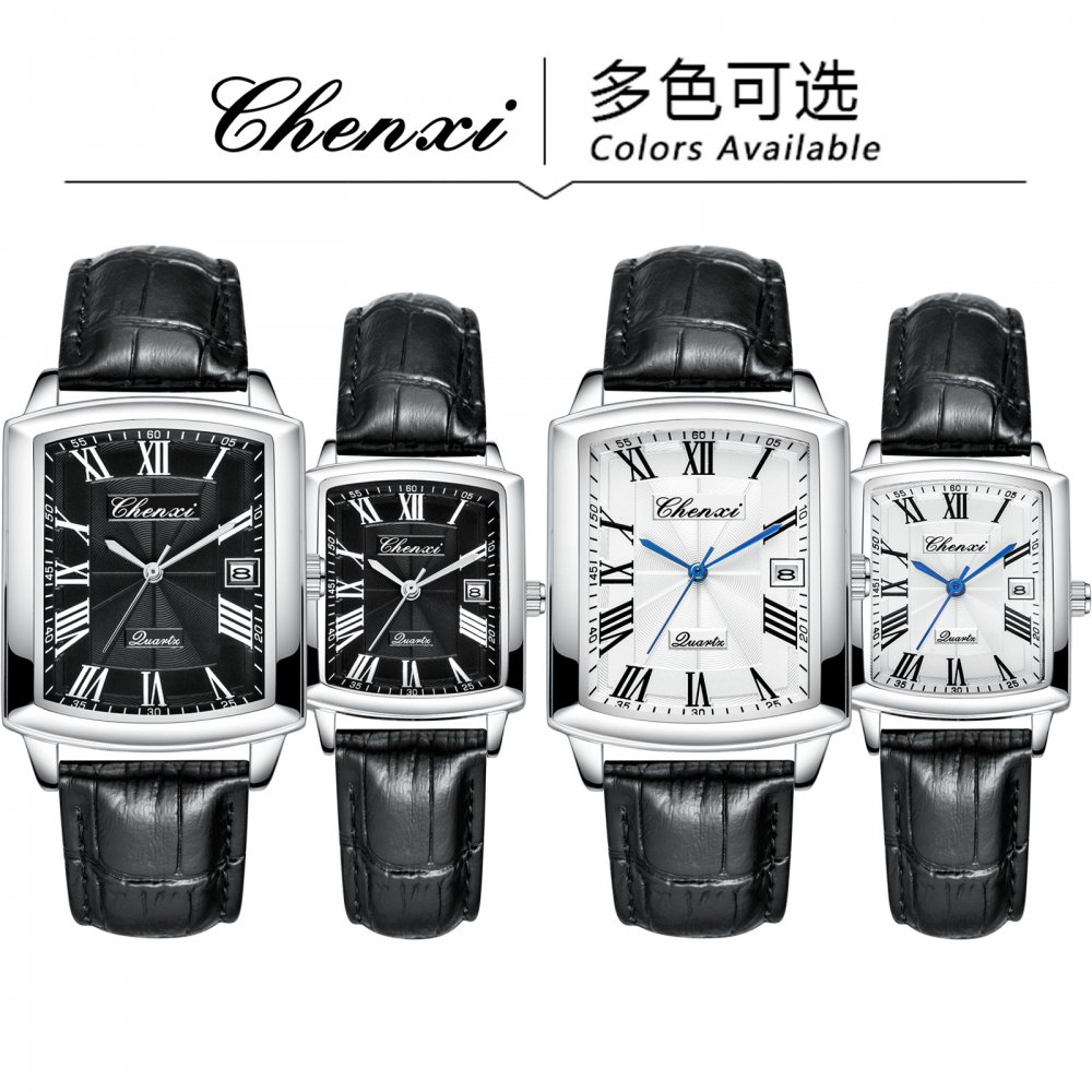 Casual couple watches Chenxi brand calendar quartz watch square belt watch wholesale