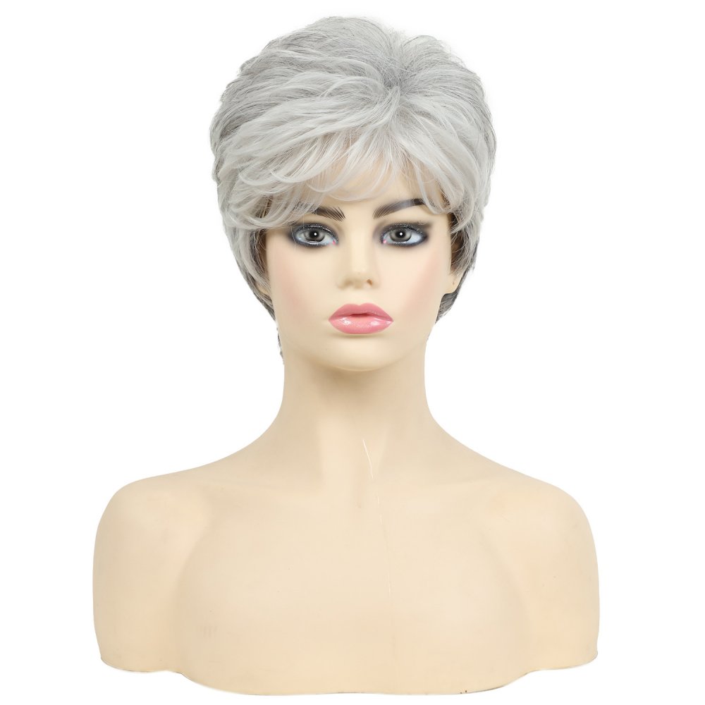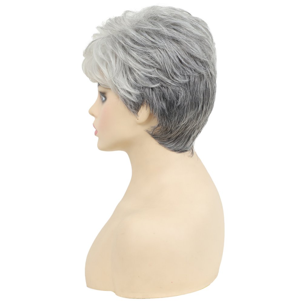 Chemical Fiber Women's Fashion Short Hair Gray Gradient Fluffy Wig