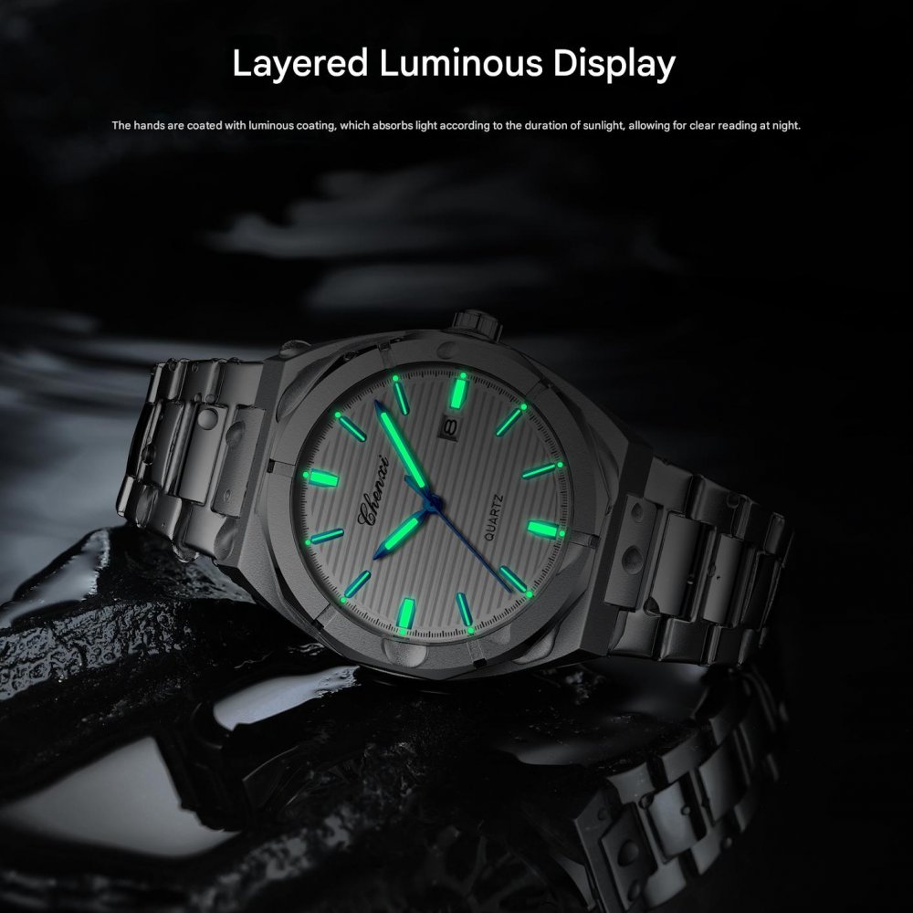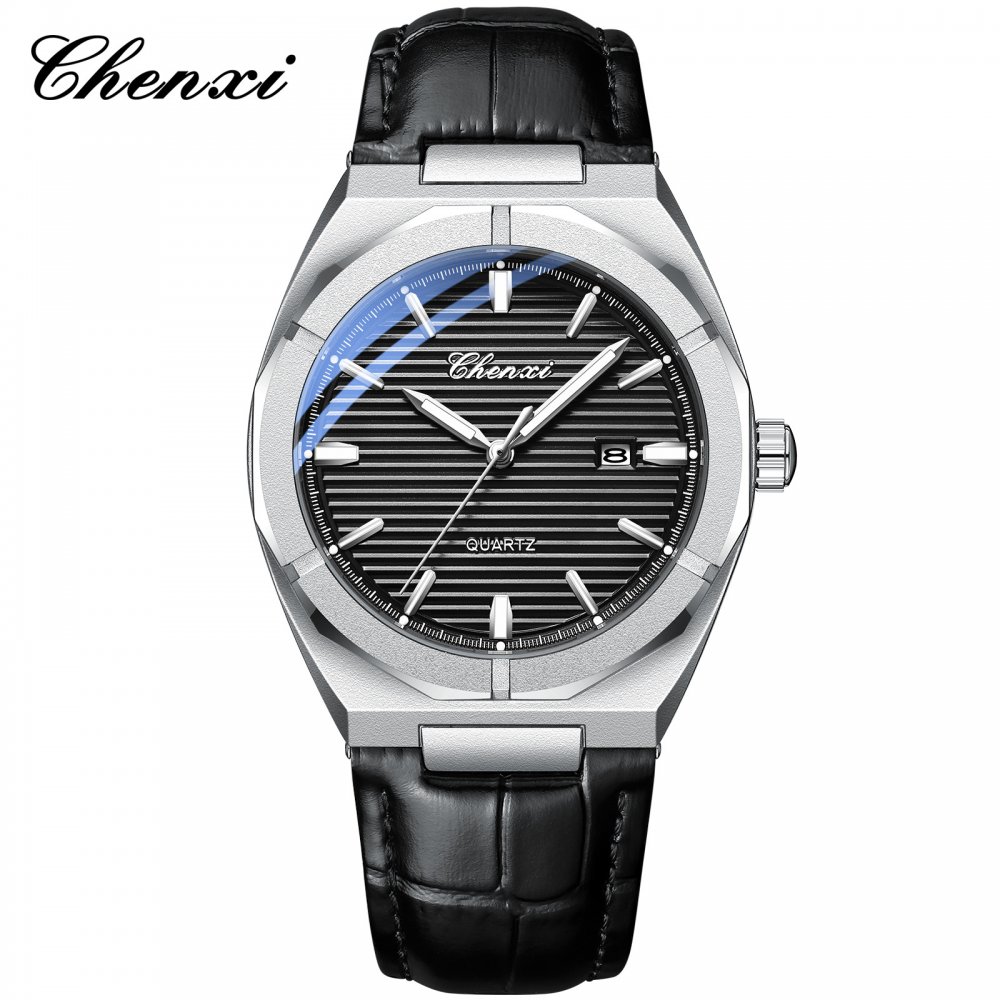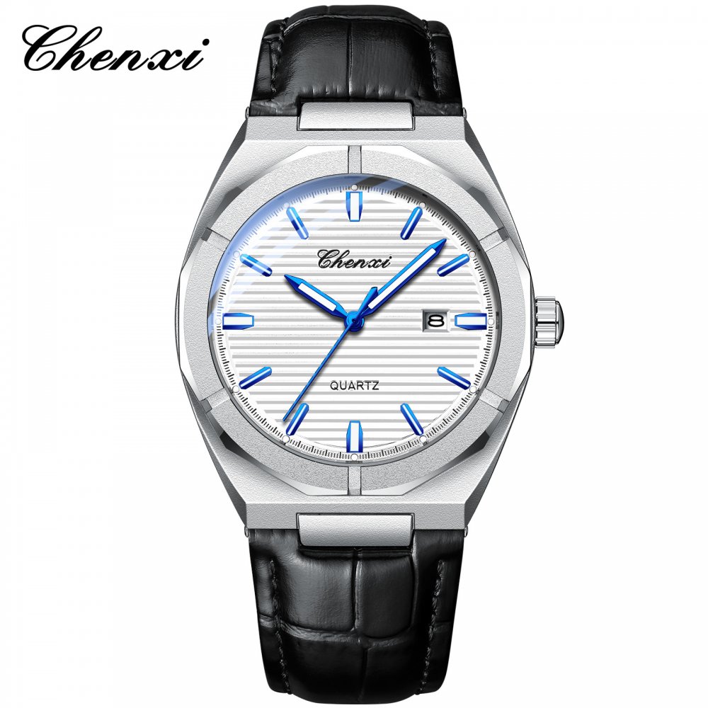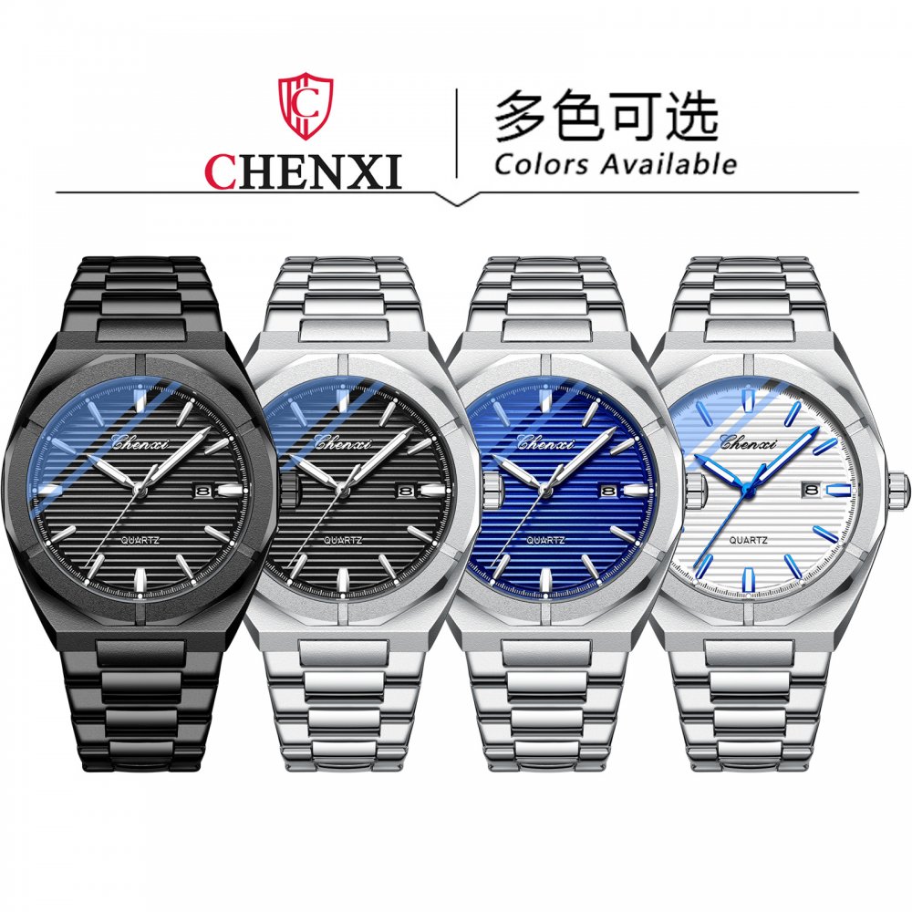 Chenxi business men's watch horizontal calendar polygonal luminous waterproof steel belt quartz watch men