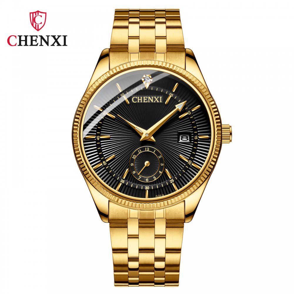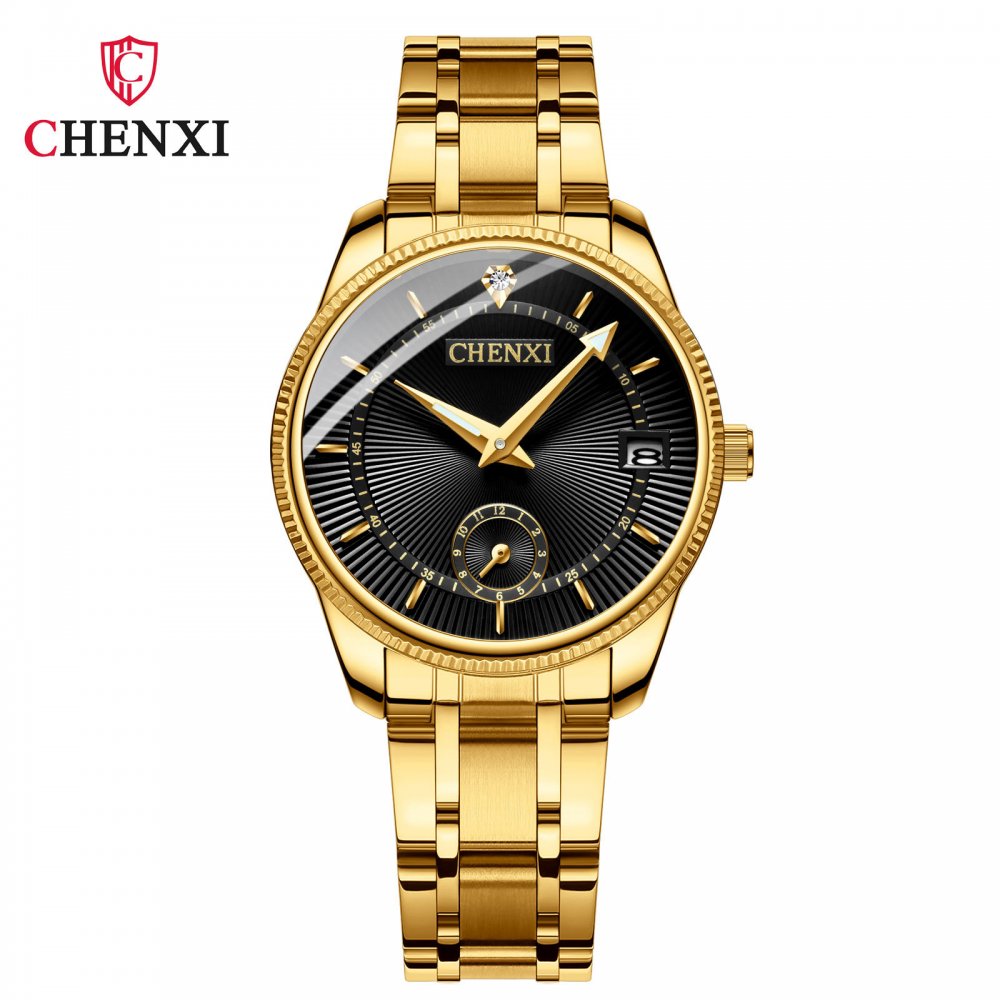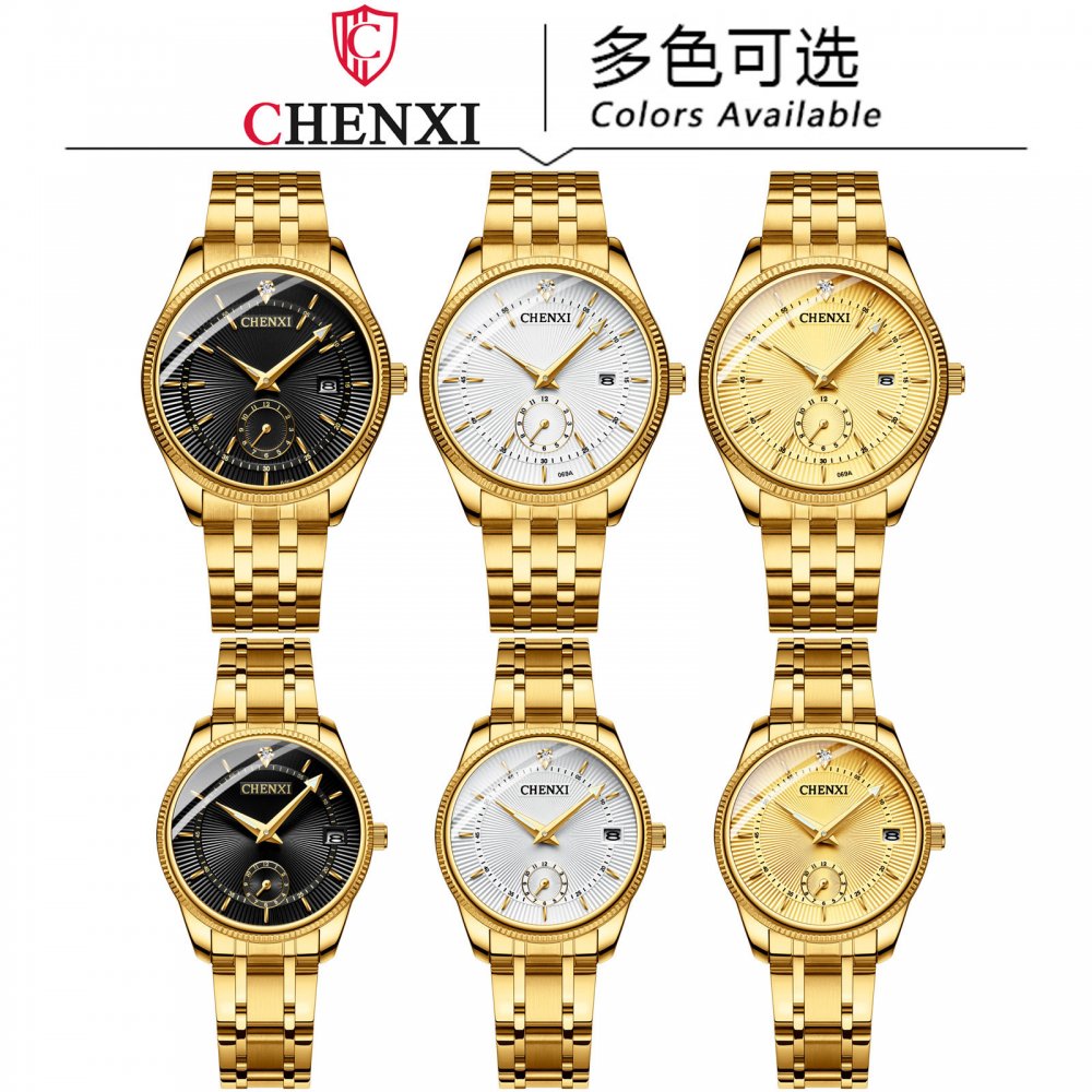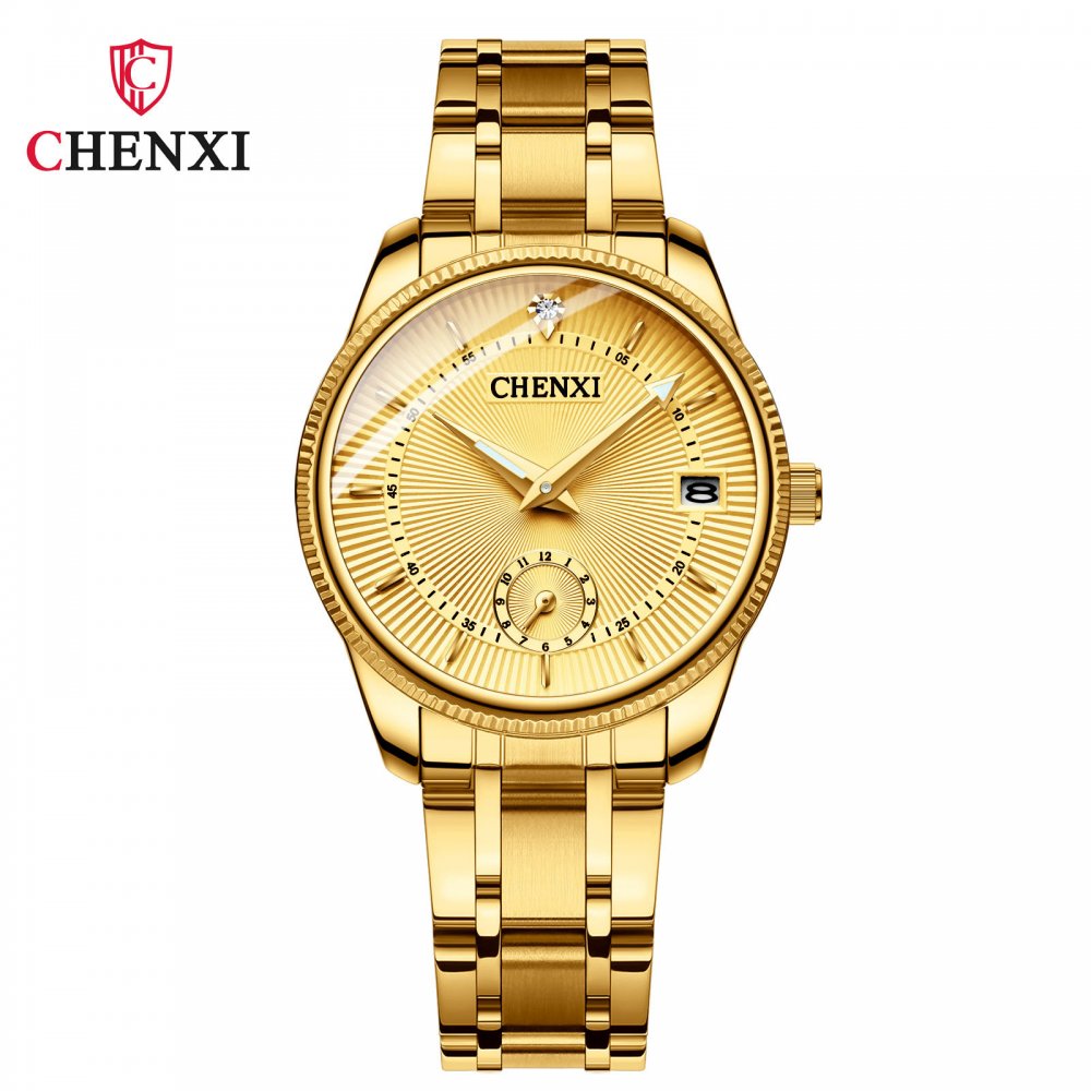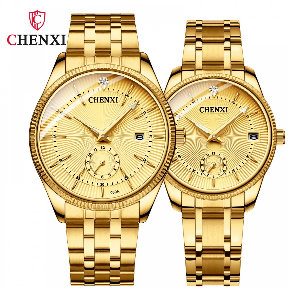 Chenxi couple watch full gold couple watch two-pin half calendar men and women quartz watch
