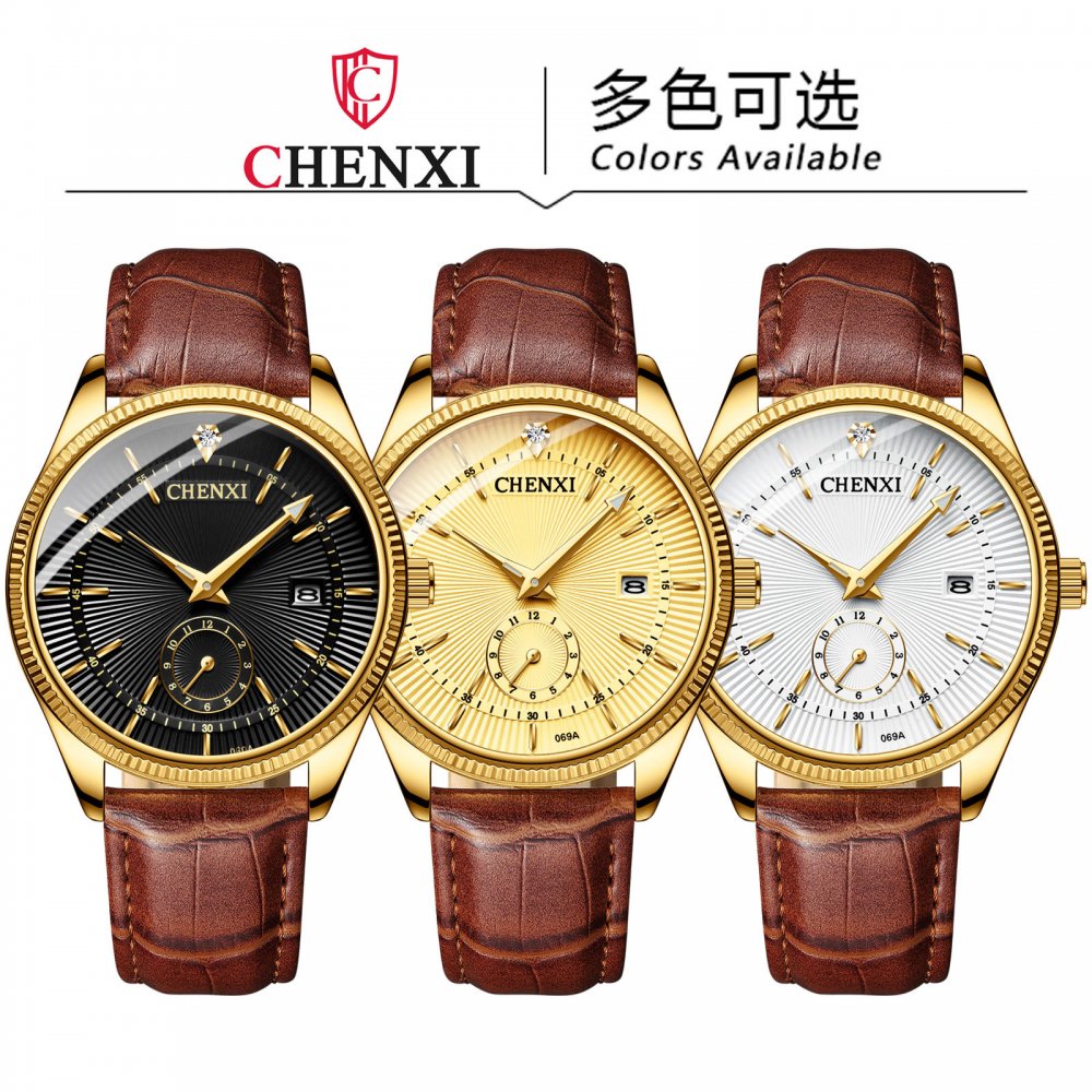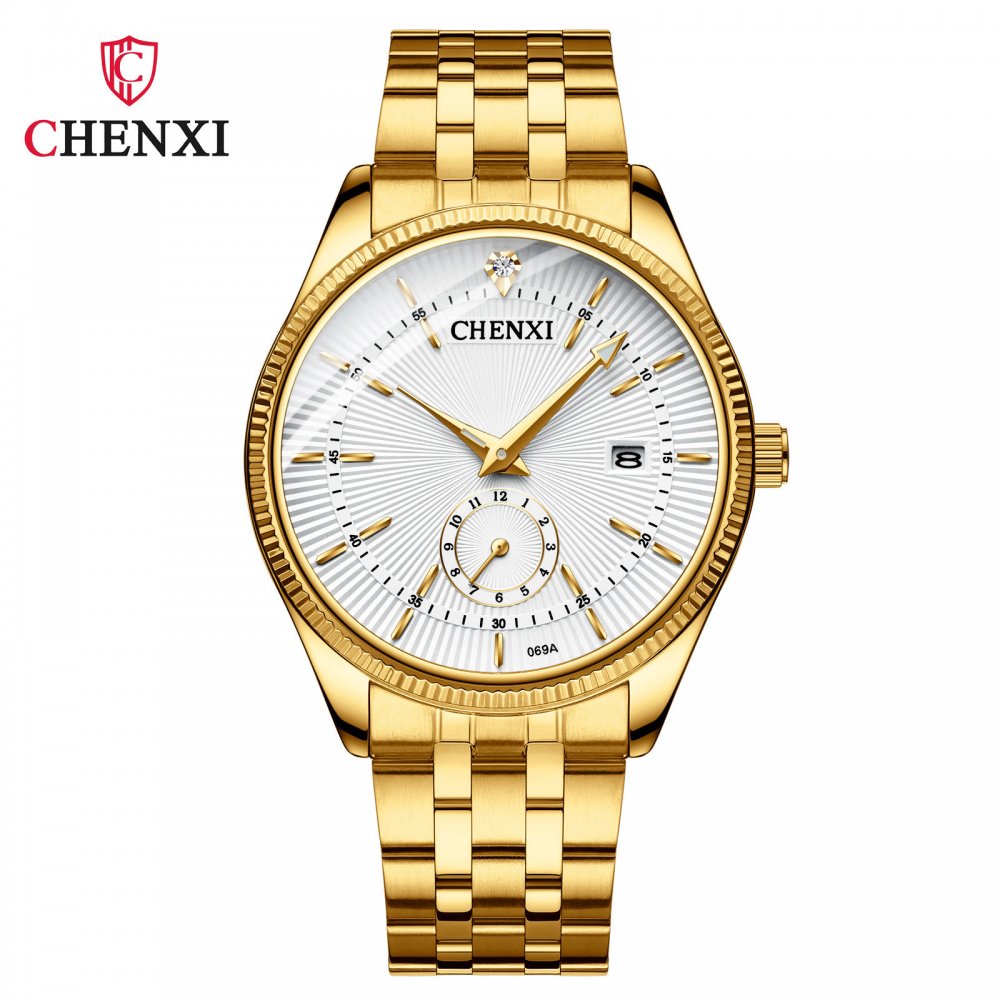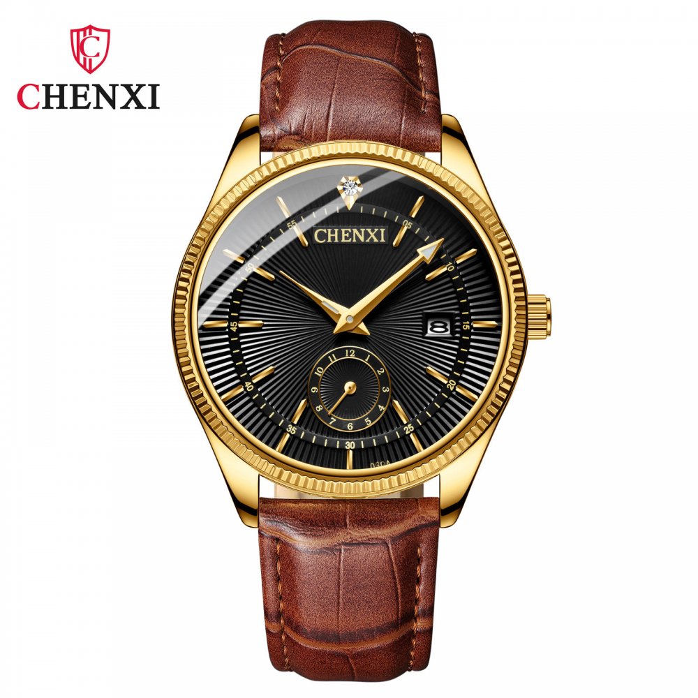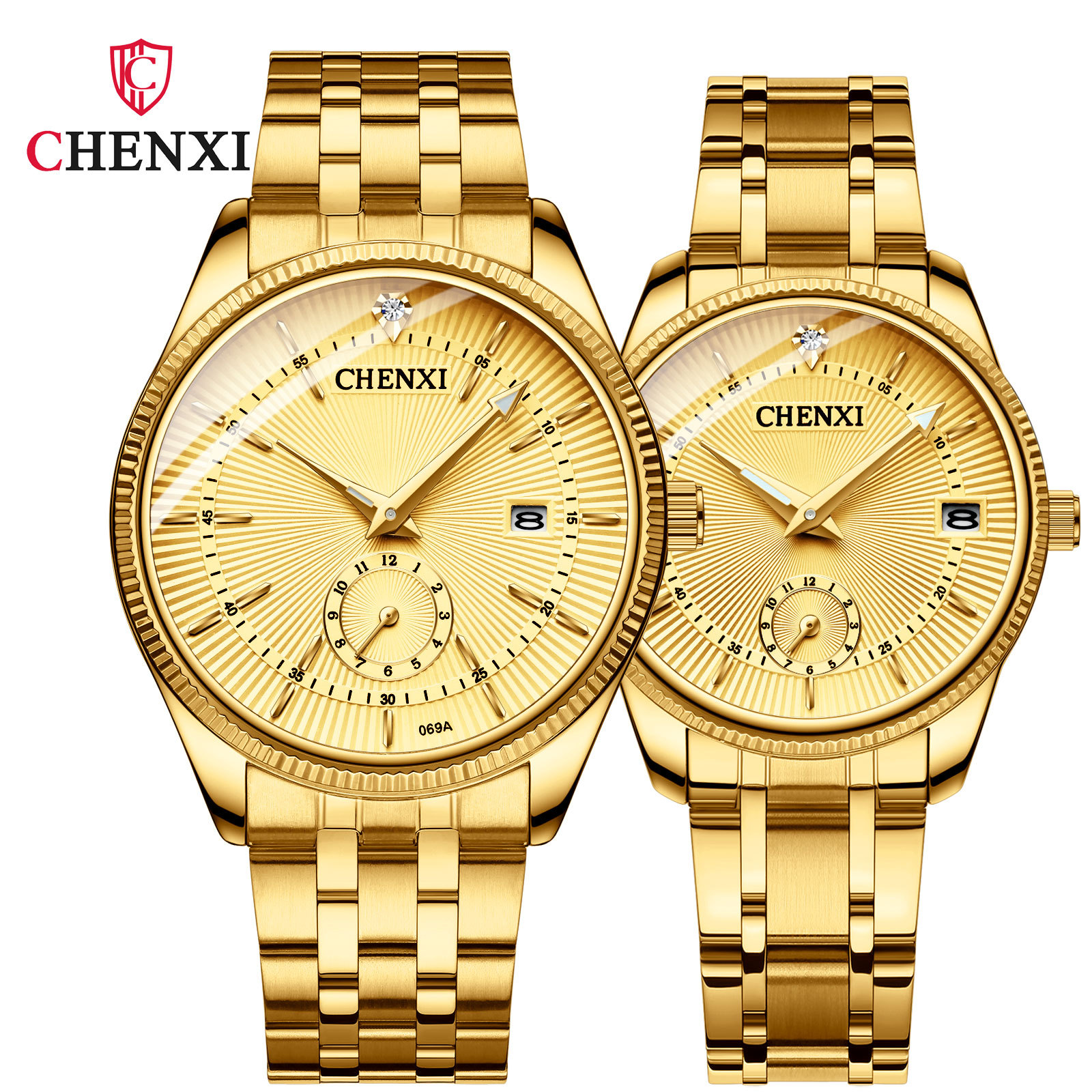 Chenxi couple watch full gold couple watch two-pin half calendar men and women quartz watch