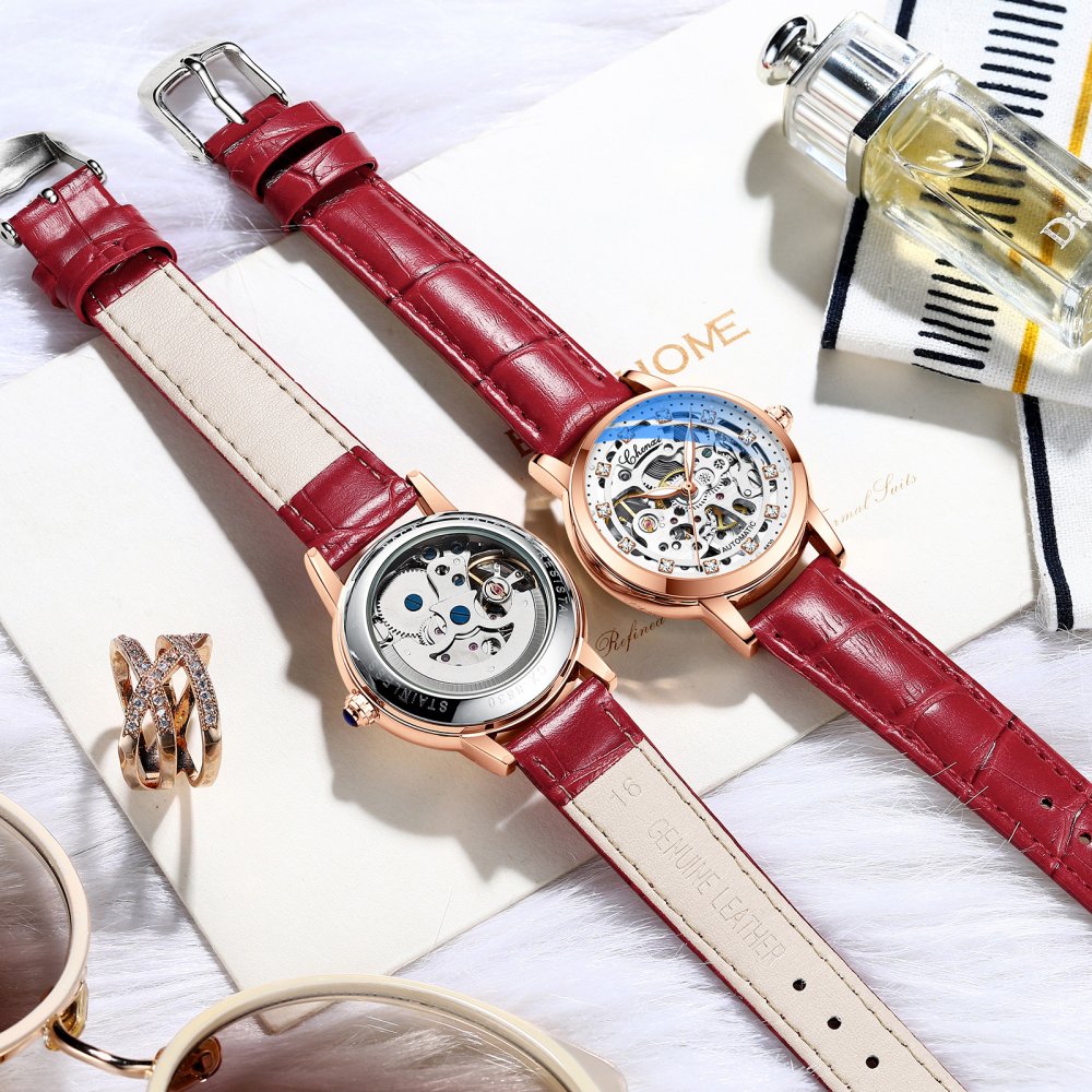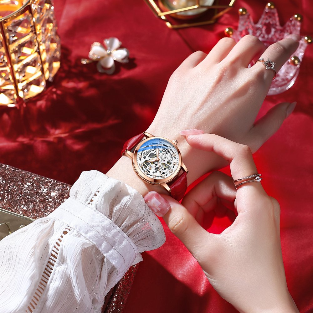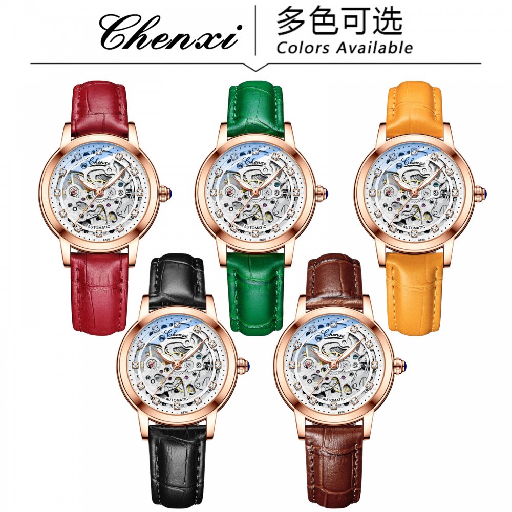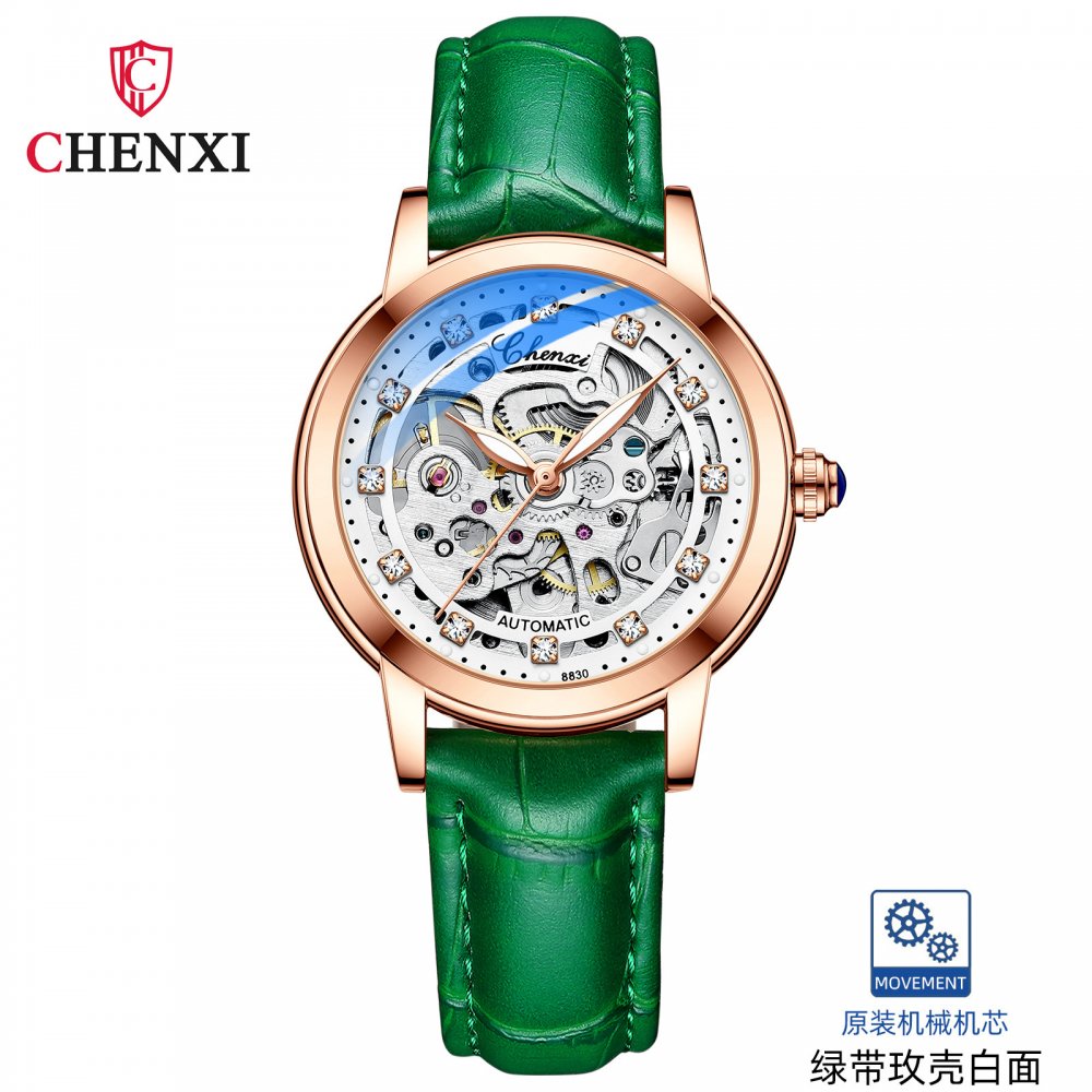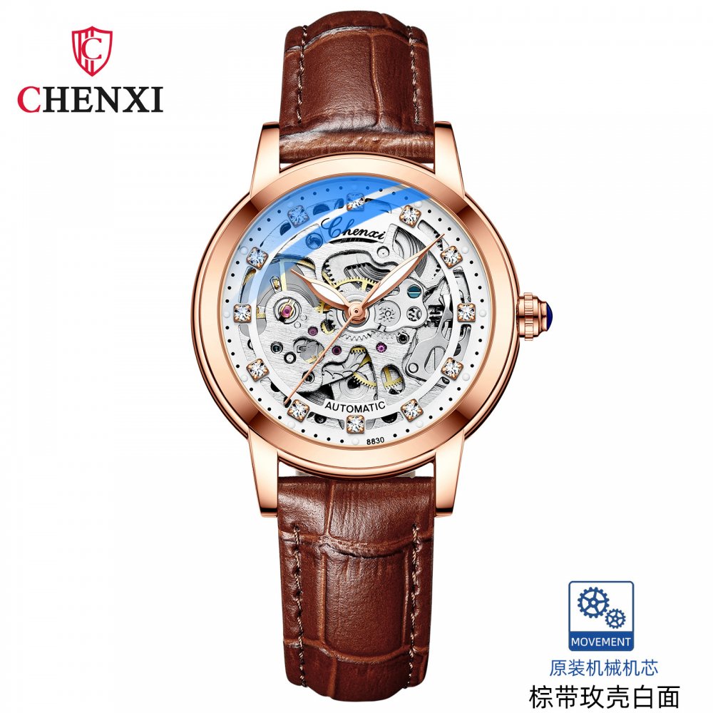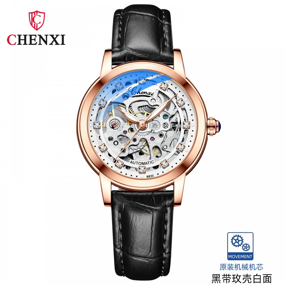 Chenxi fashion diamond-studded waterproof fully automatic hollow mechanical watch for women