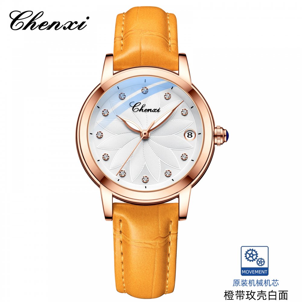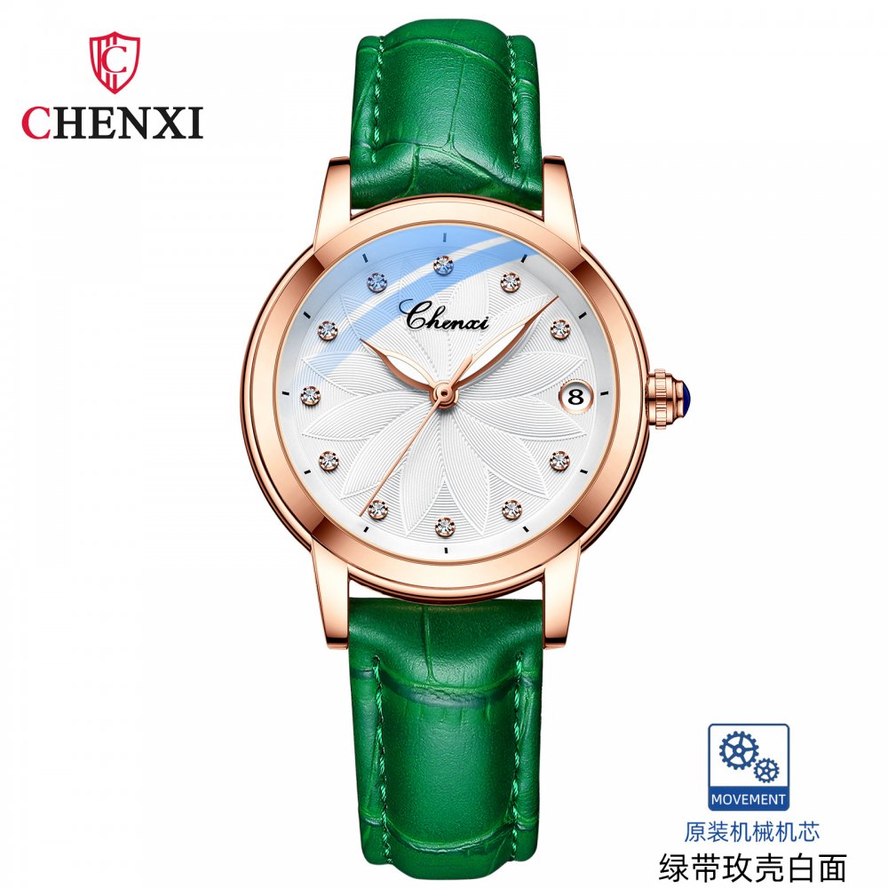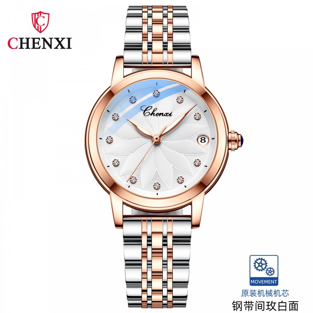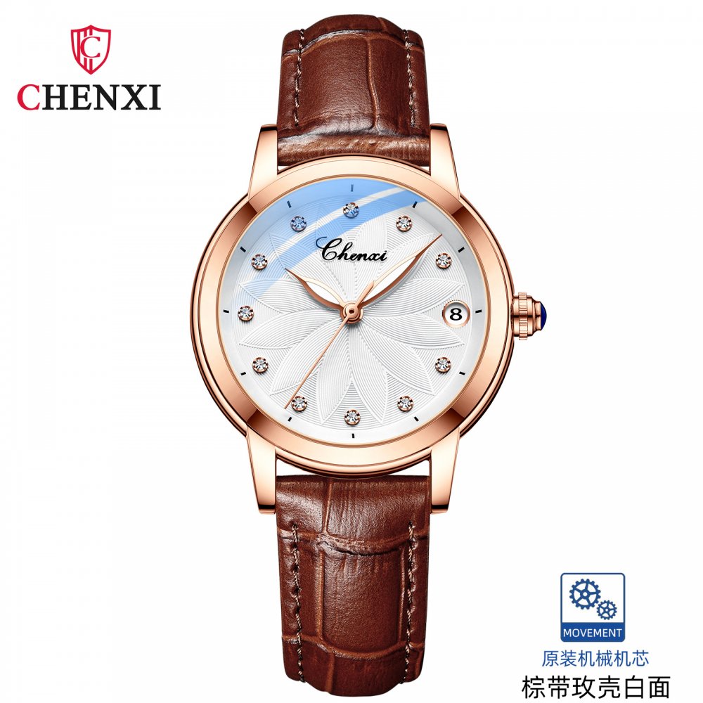 Chenxi genuine ladies watch trendy fashion fully automatic mechanical watch diamond waterproof luminous calendar mechanical watc