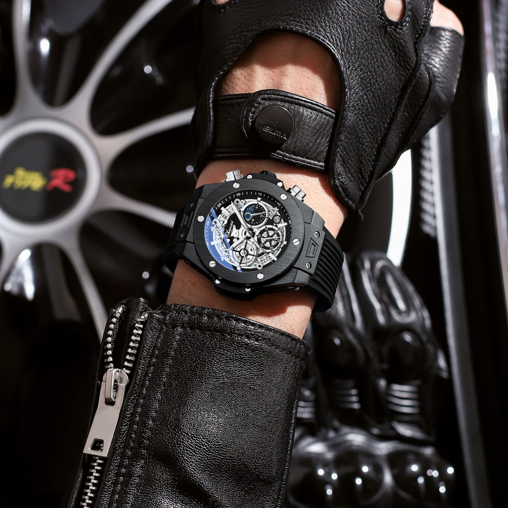 Chenxi multifunctional cool men's watch geometric rivet moon phase chronograph luminous quartz watch
