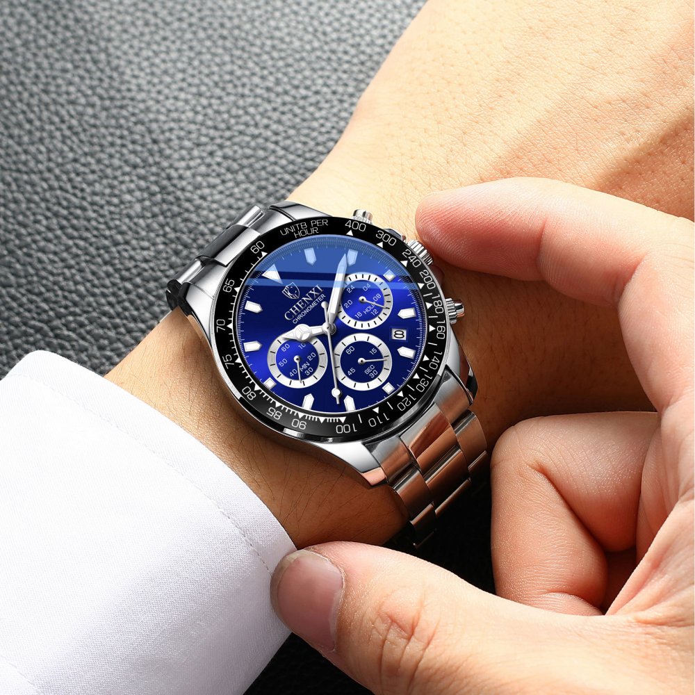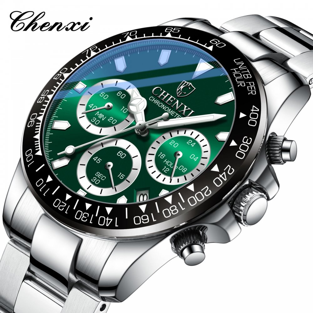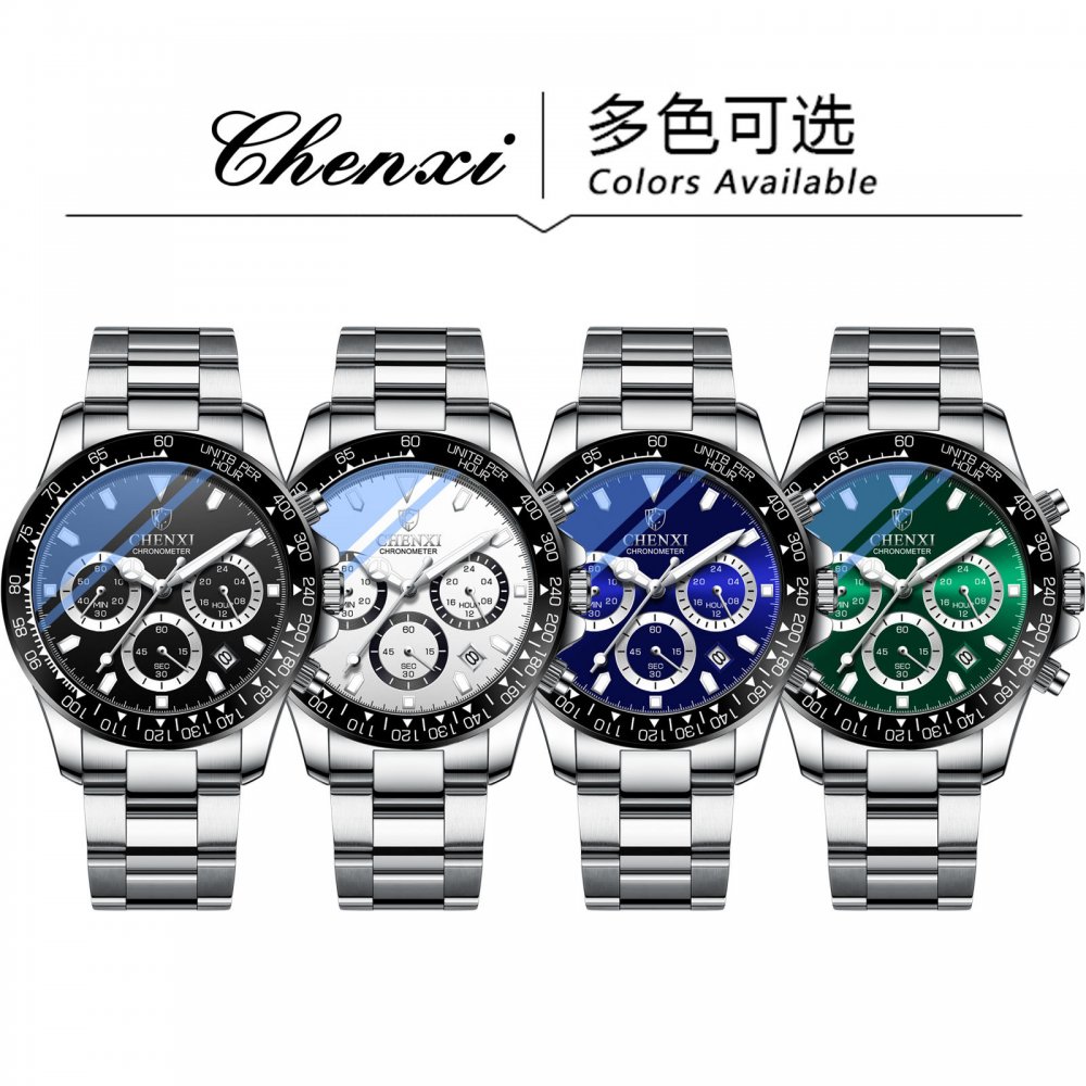 Chenxi multifunctional three-eye six-pin men's alloy sports watch waterproof luminous decorative calendar quartz watch