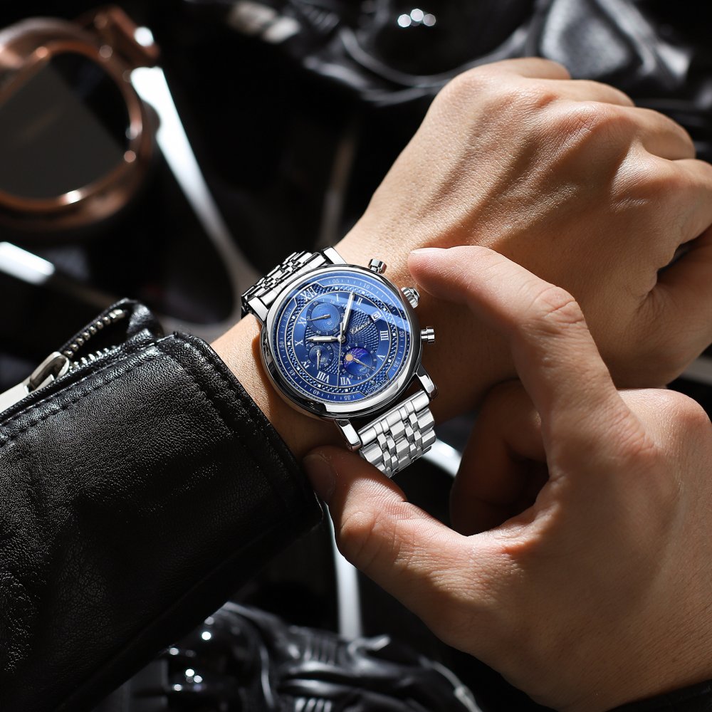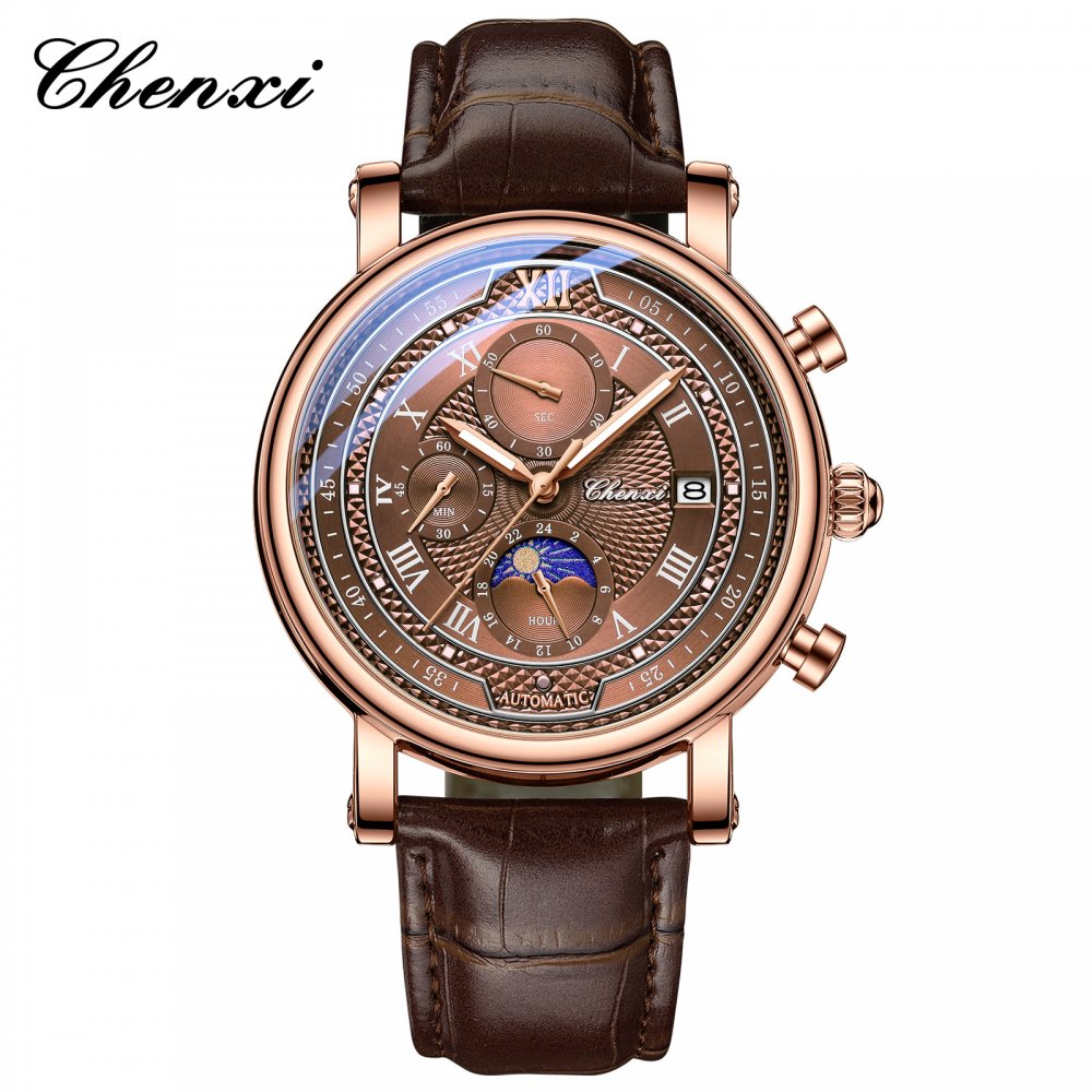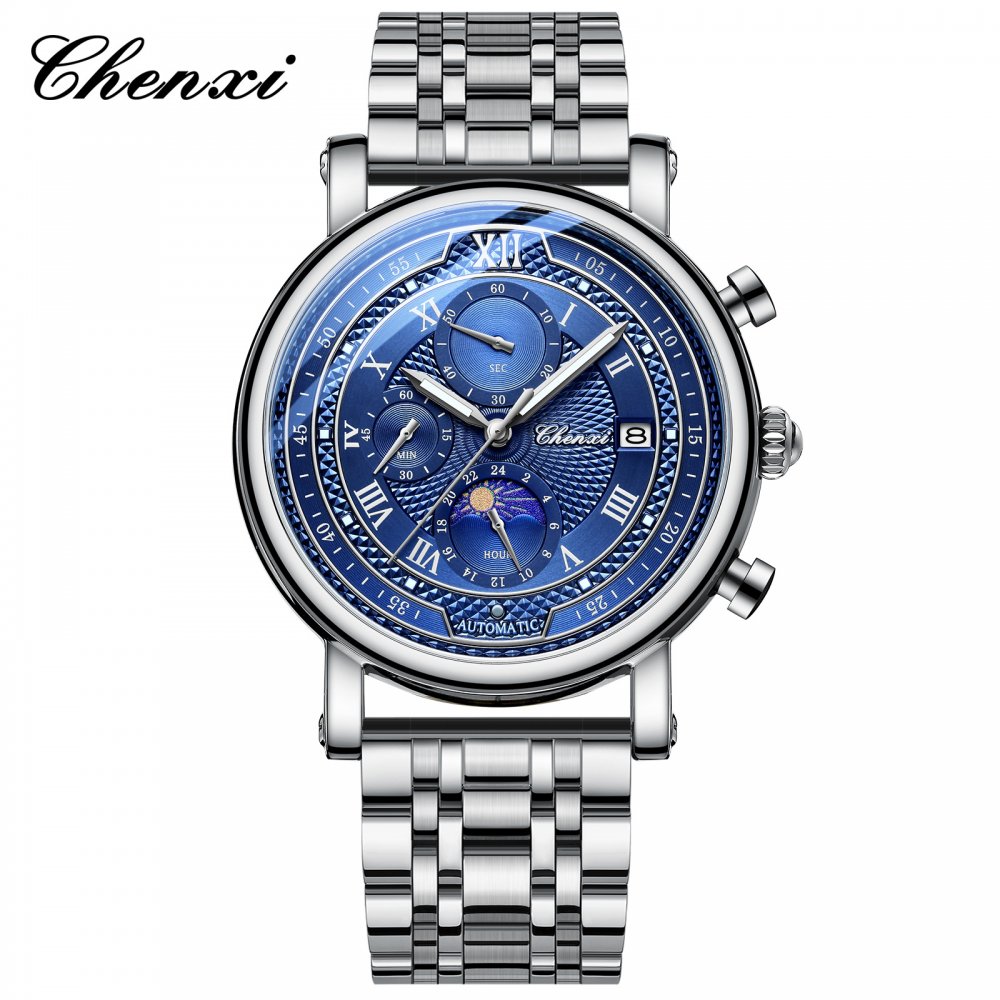 Chenxi multifunctional true three-eye six-pin men's watch moon phase calendar timing business quartz watch