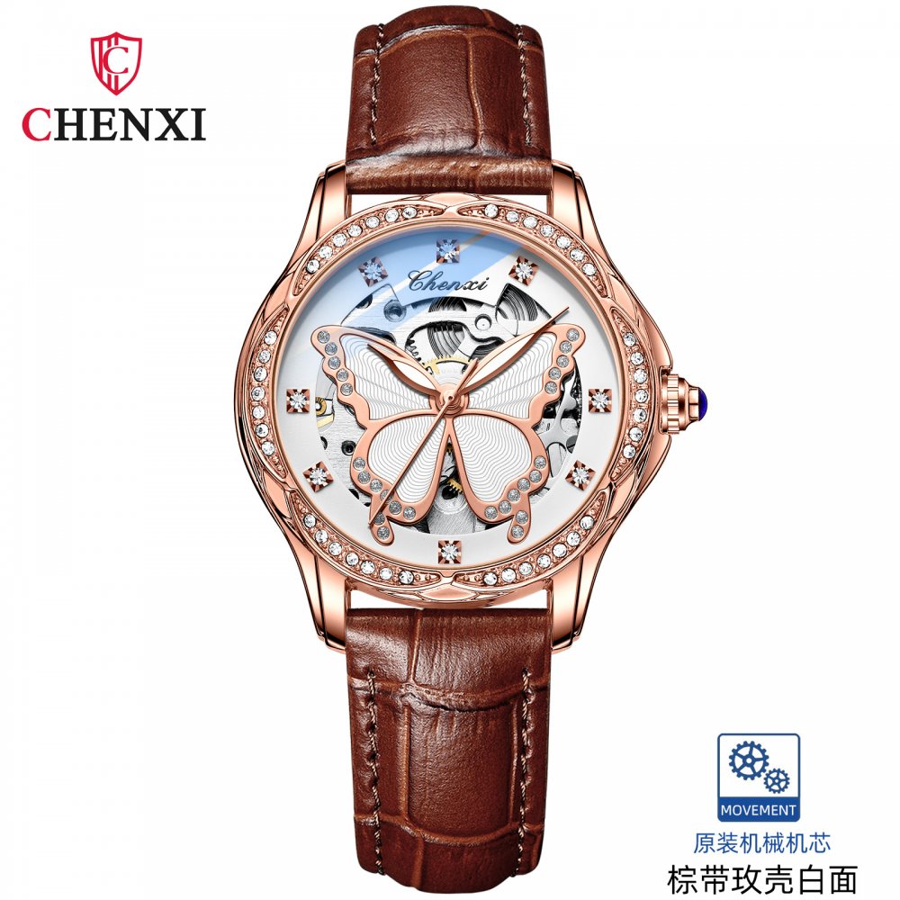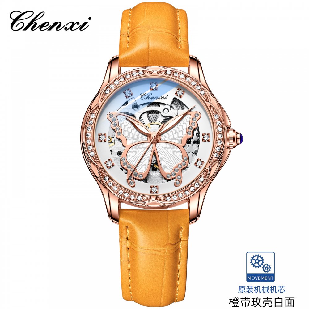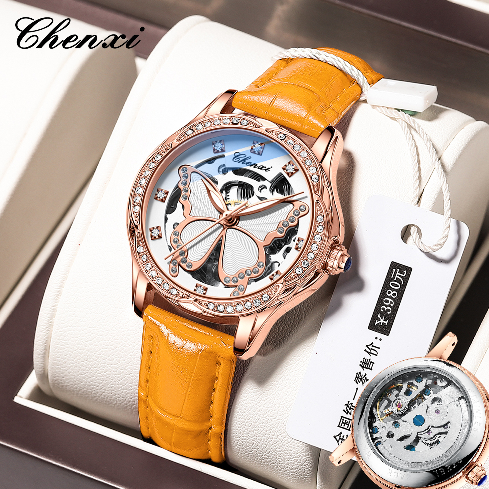 Chenxi new Ai Ma orange butterfly dial fashion diamond watch women wholesale ladies waterproof automatic mechanical watch