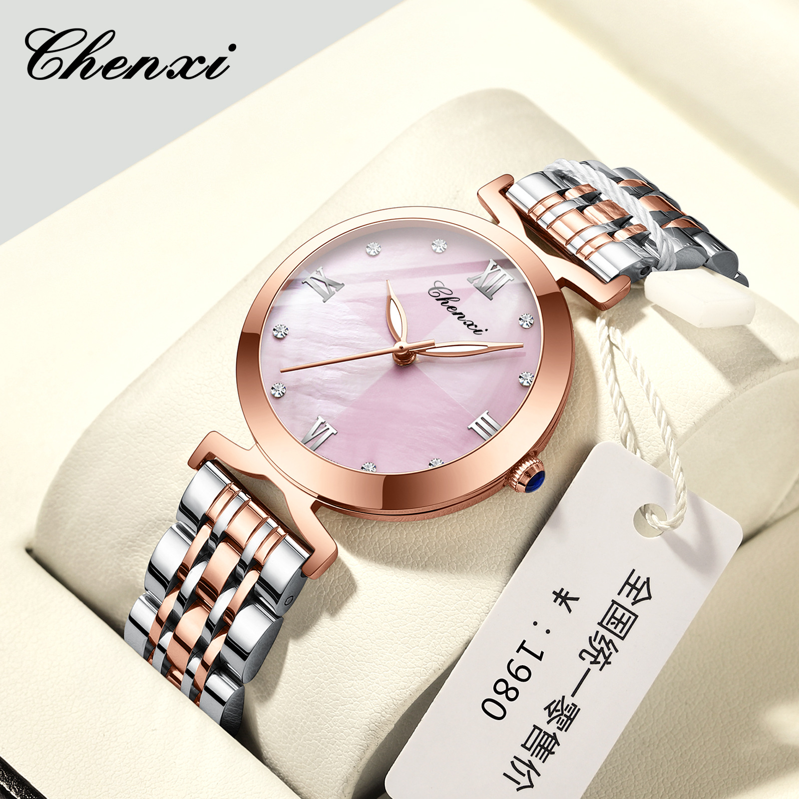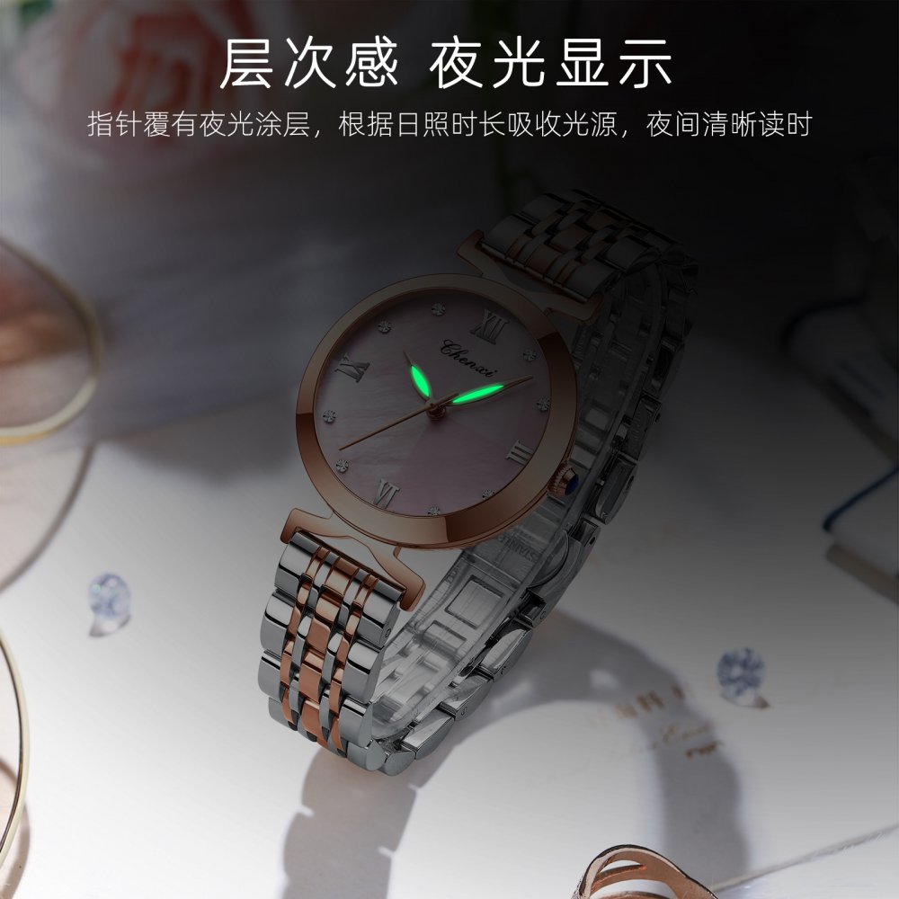 Chenxi new mother-of-pearl quartz ladies watch Haoshi gold solid steel belt women's watch