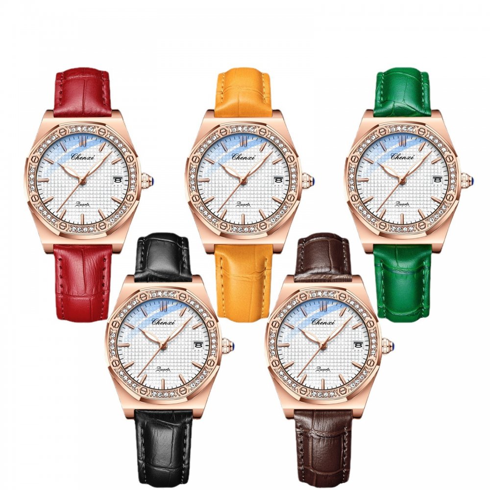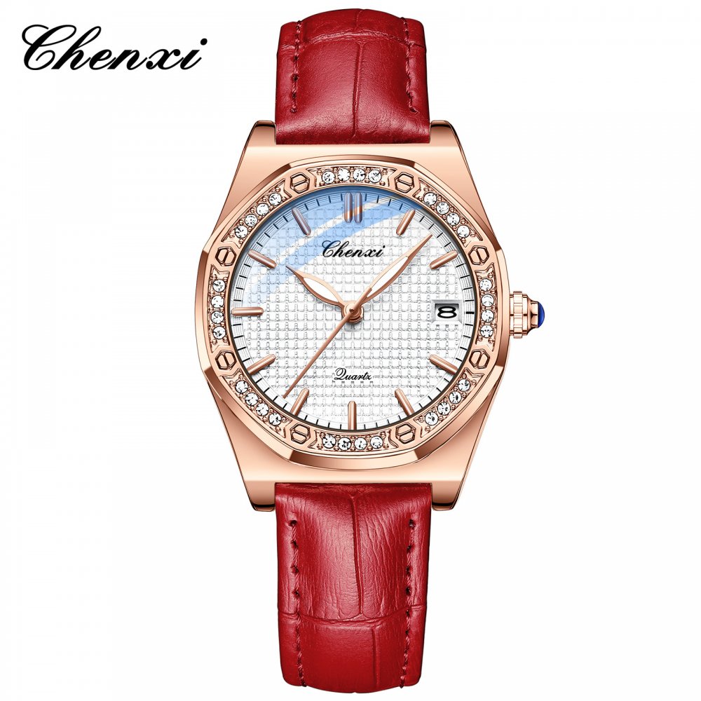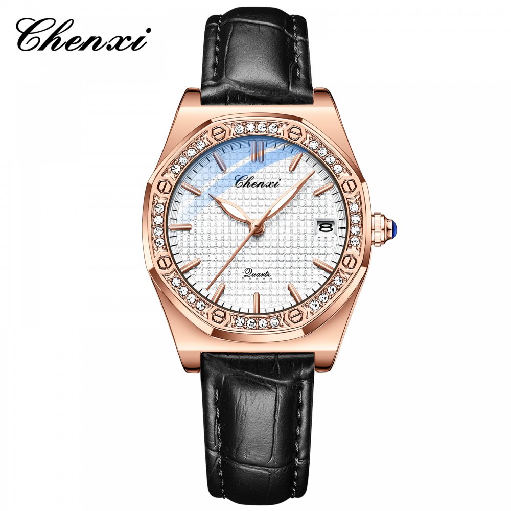 CHENXI new popular watch women's fashion calendar diamond waterproof genuine leather watch
