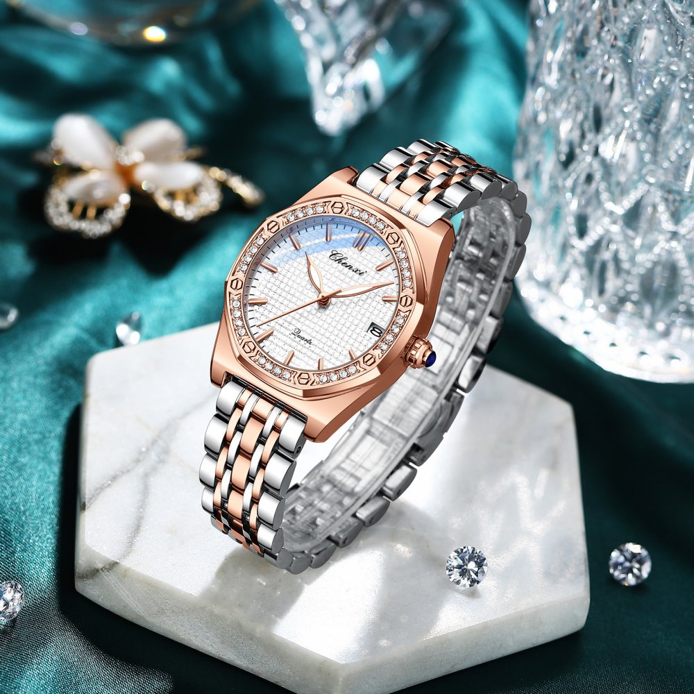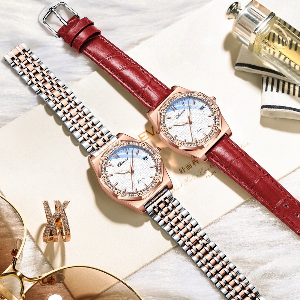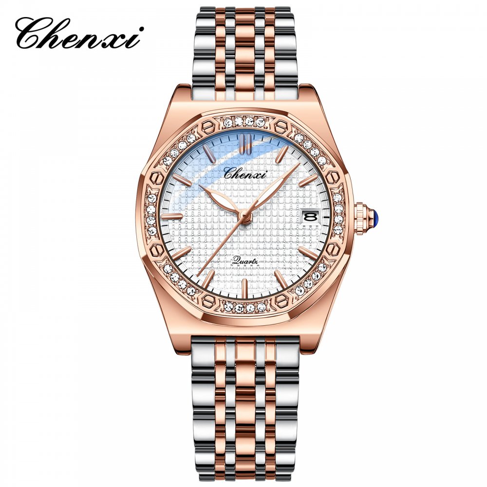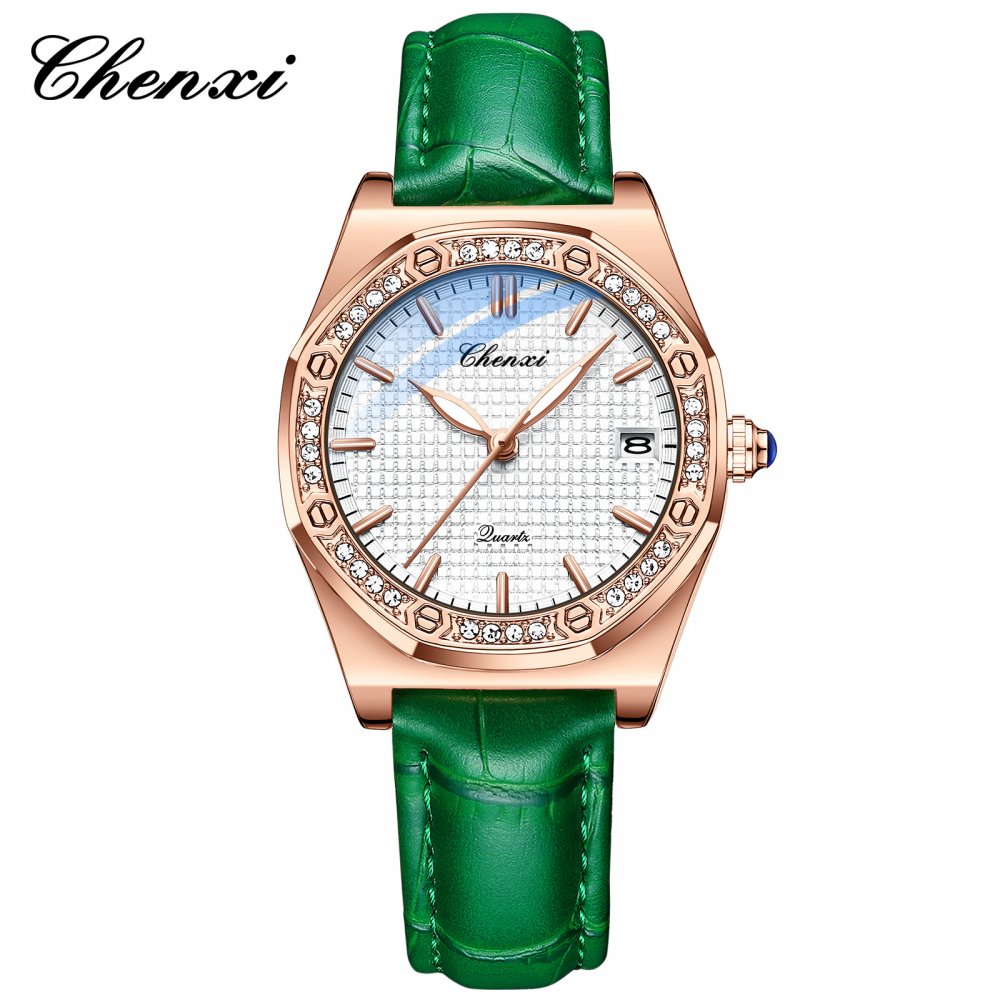 CHENXI new popular watch women's fashion calendar diamond waterproof genuine leather watch