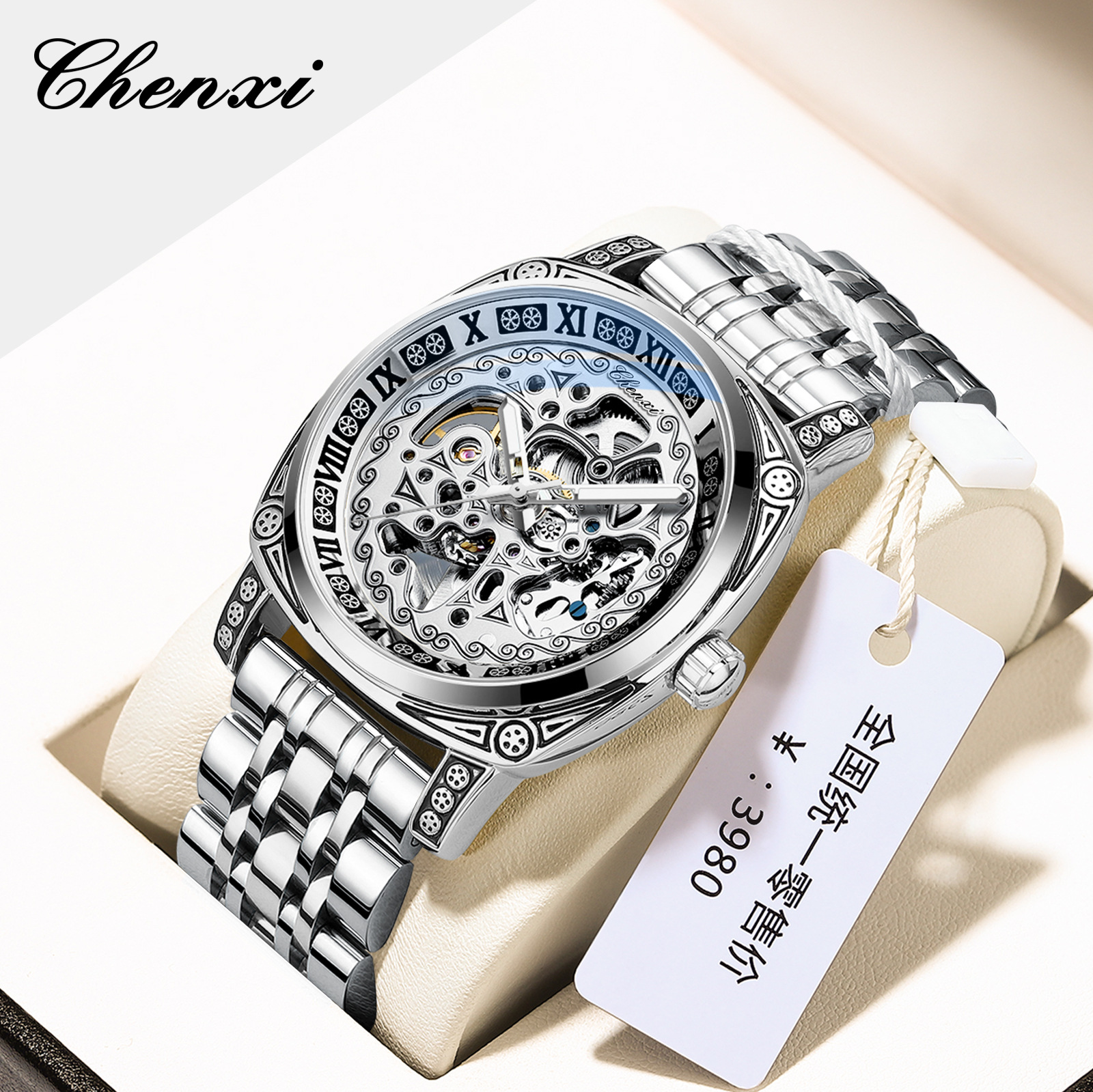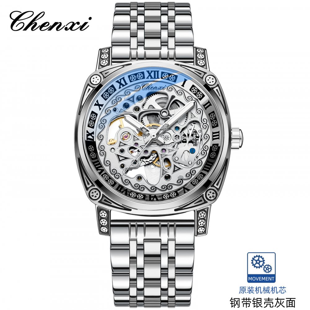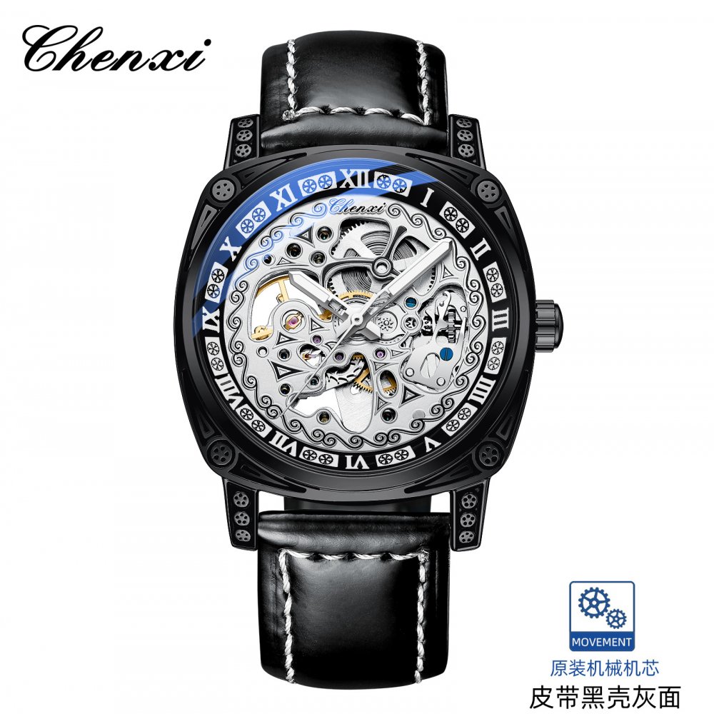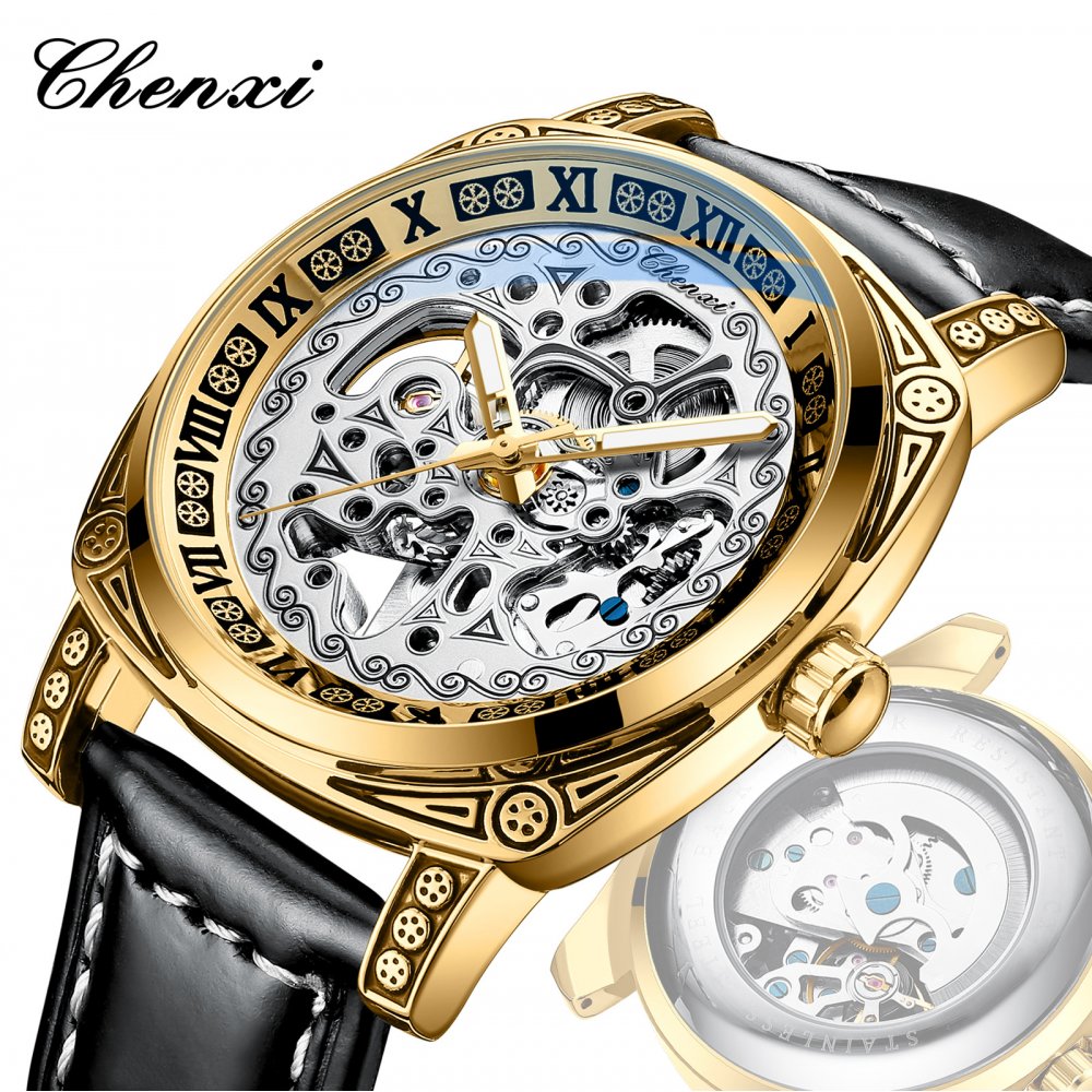 Chenxi new retro carved watch men's mechanical watch men's genuine leather waterproof hollow vibrato hot mechanical watch