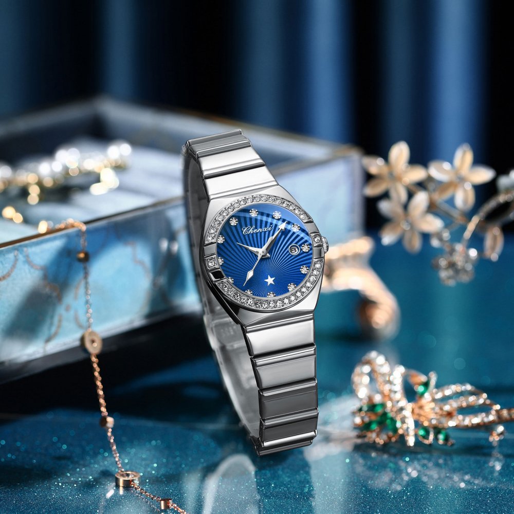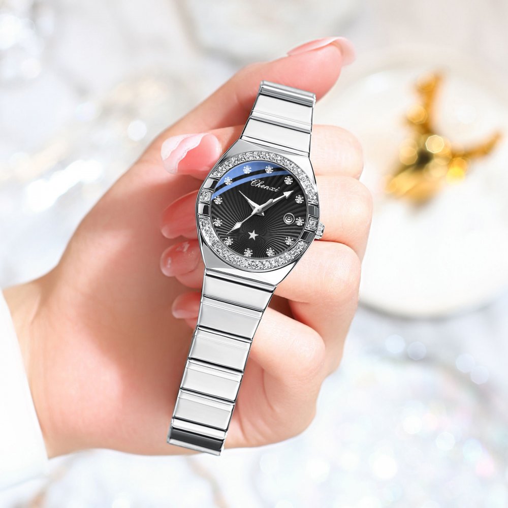 Chenxi new round diamond scale watch calendar luminous waterproof ladies watch quartz watch