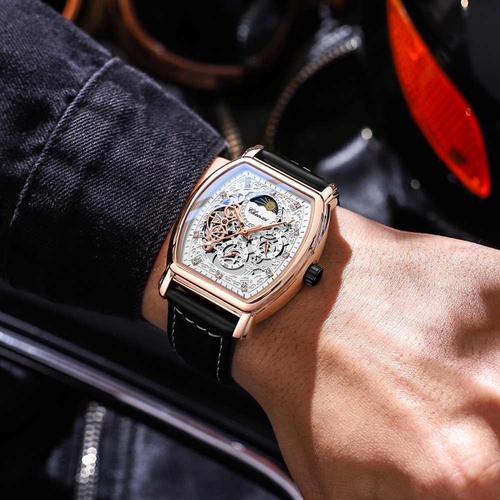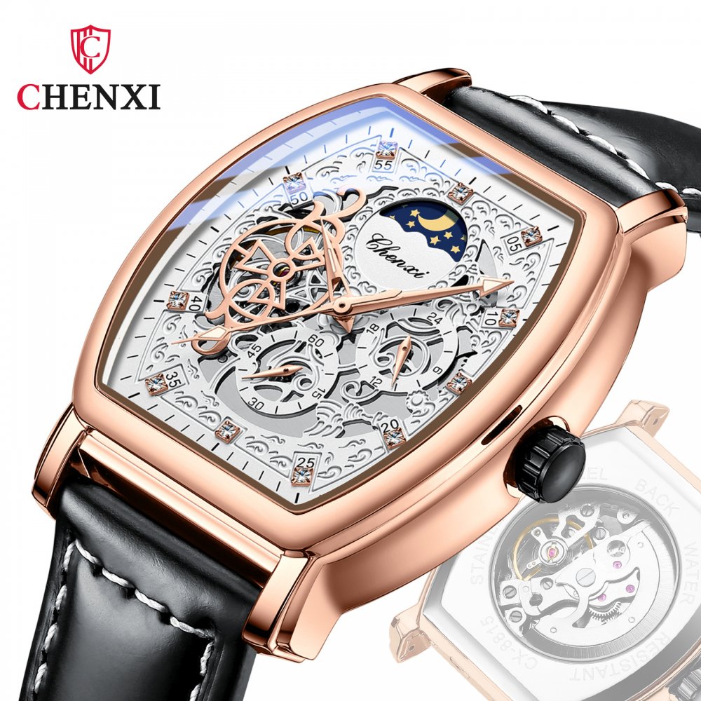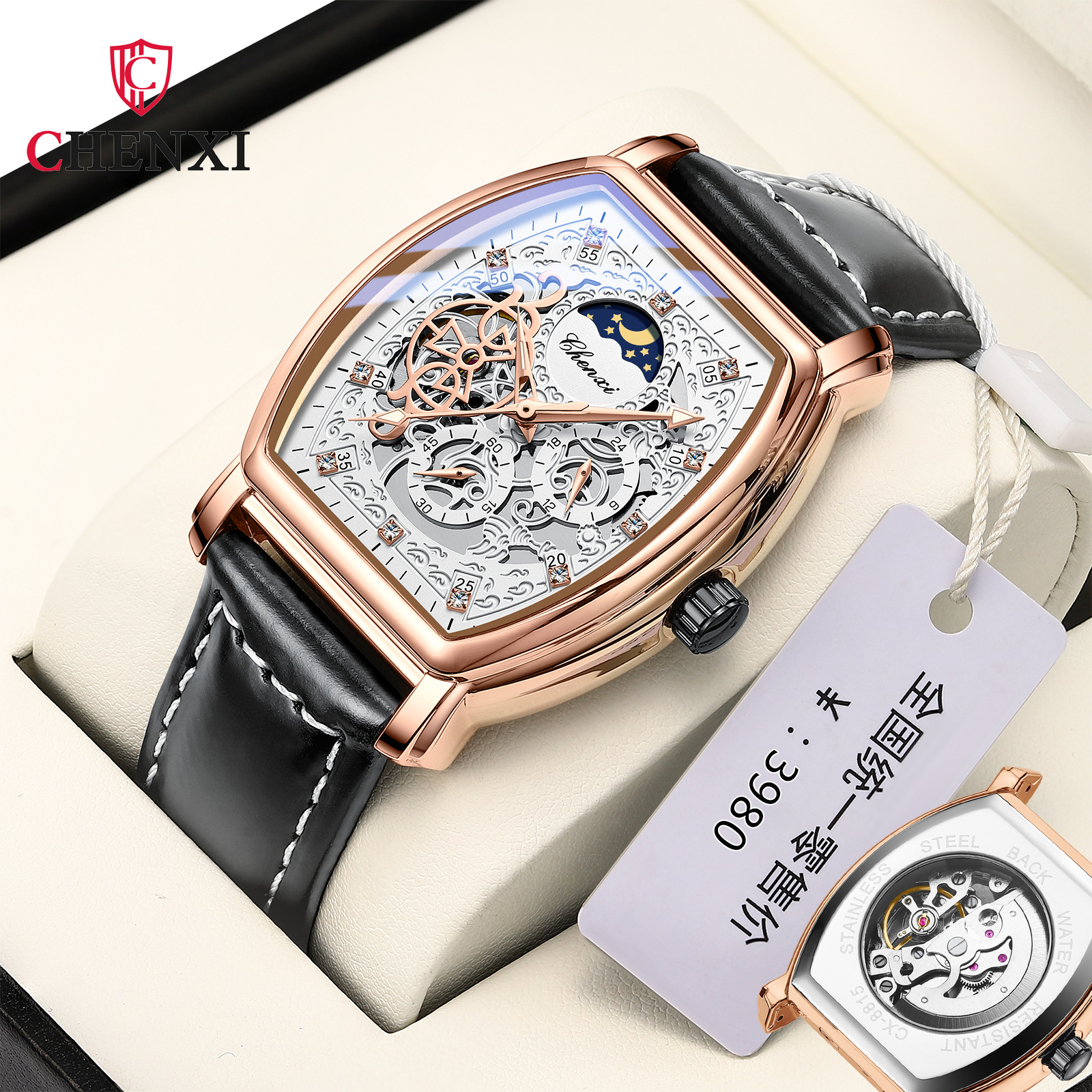Chenxi new sun, moon and stars barrel-shaped automatic mechanical watch men's luminous hollow mechanical watch wholesale