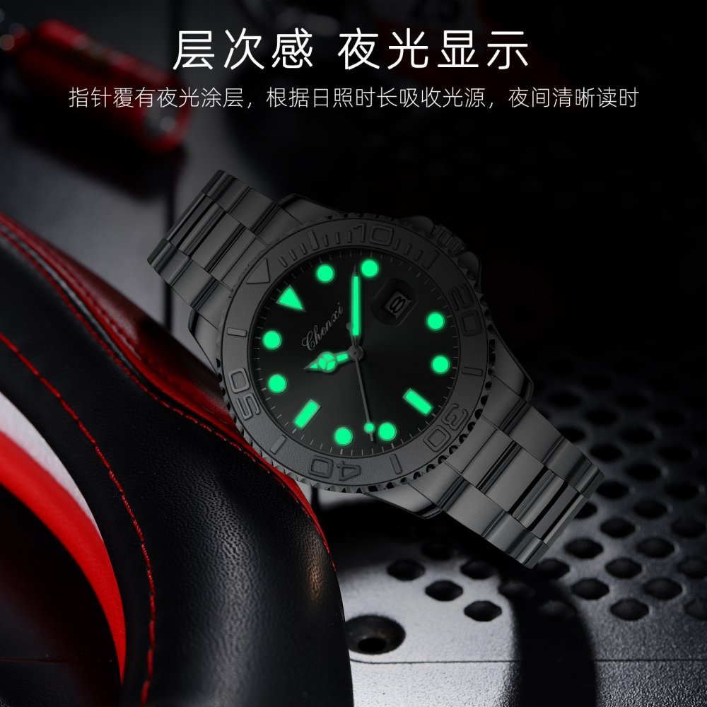 Chenxi new watch men's solid steel belt calendar luminous waterproof ghost fashion business quartz watch