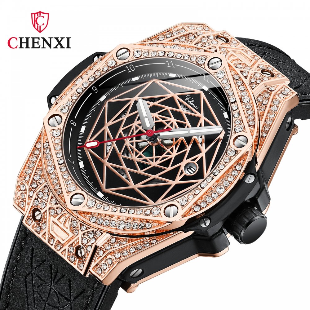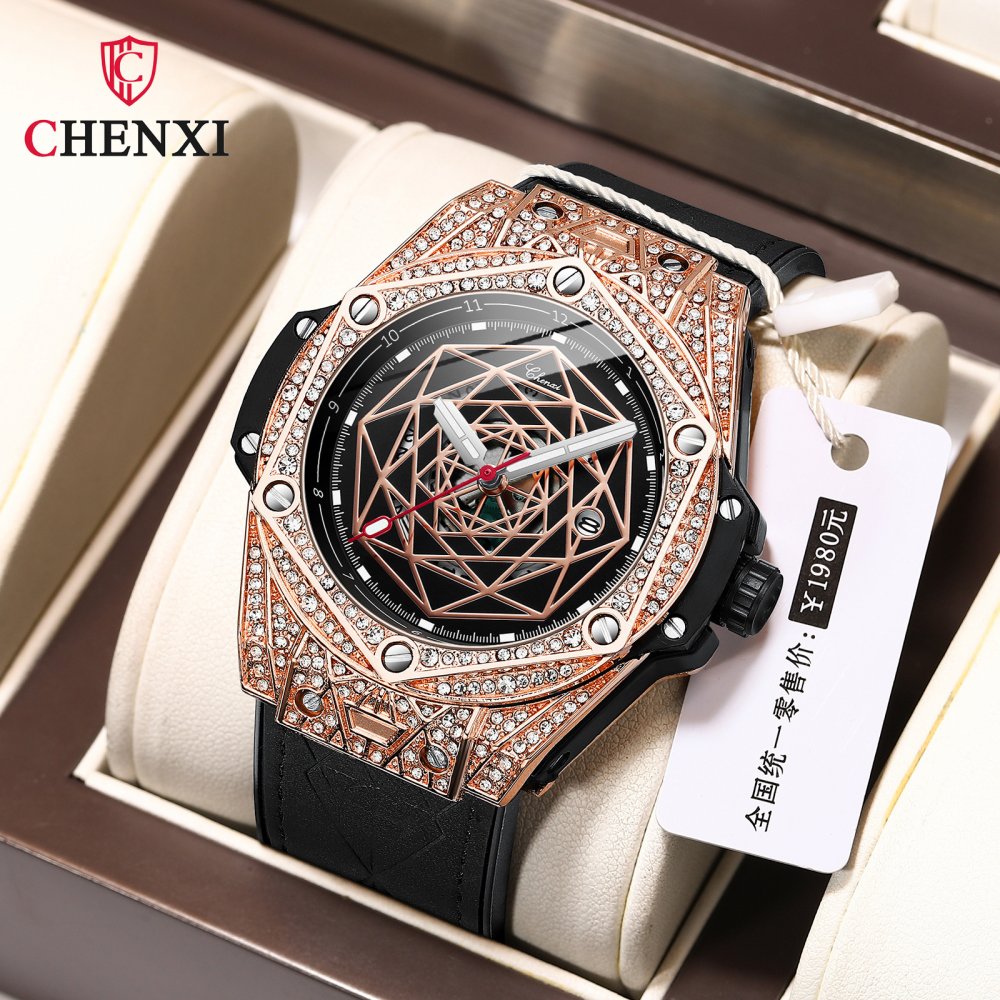CHENXI popular men's fashion diamond watch men's trendy cool quartz calendar waterproof luminous watch