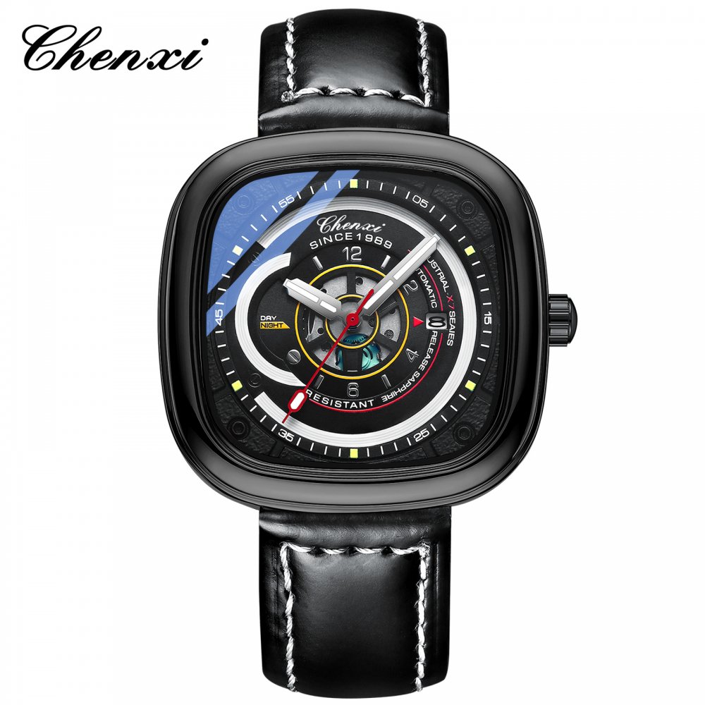 CHENXI popular square watch Men's high-end new fashion trend genuine leather luminous quartz watch