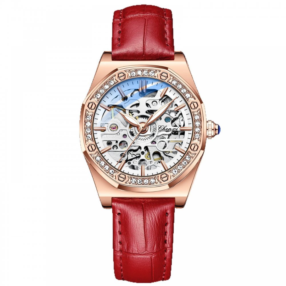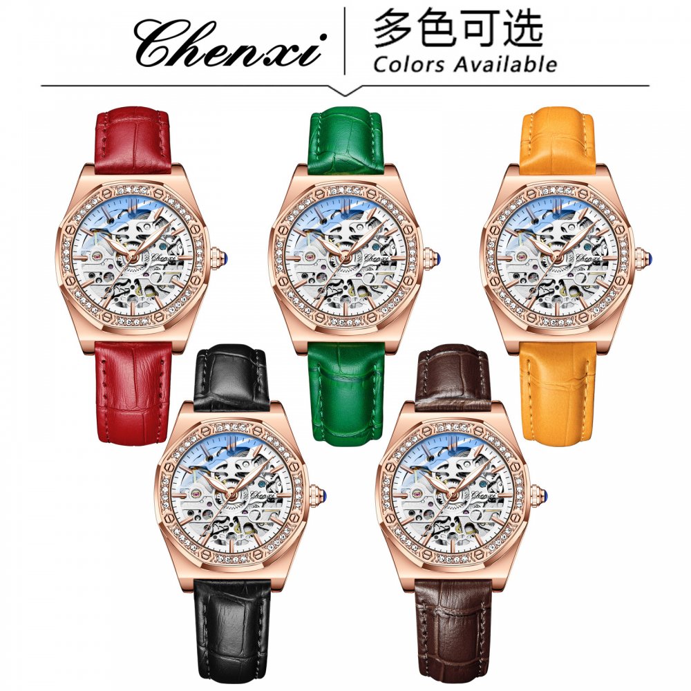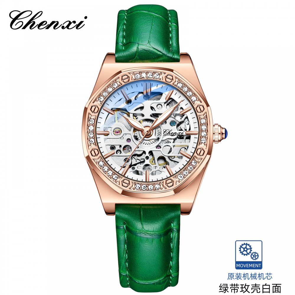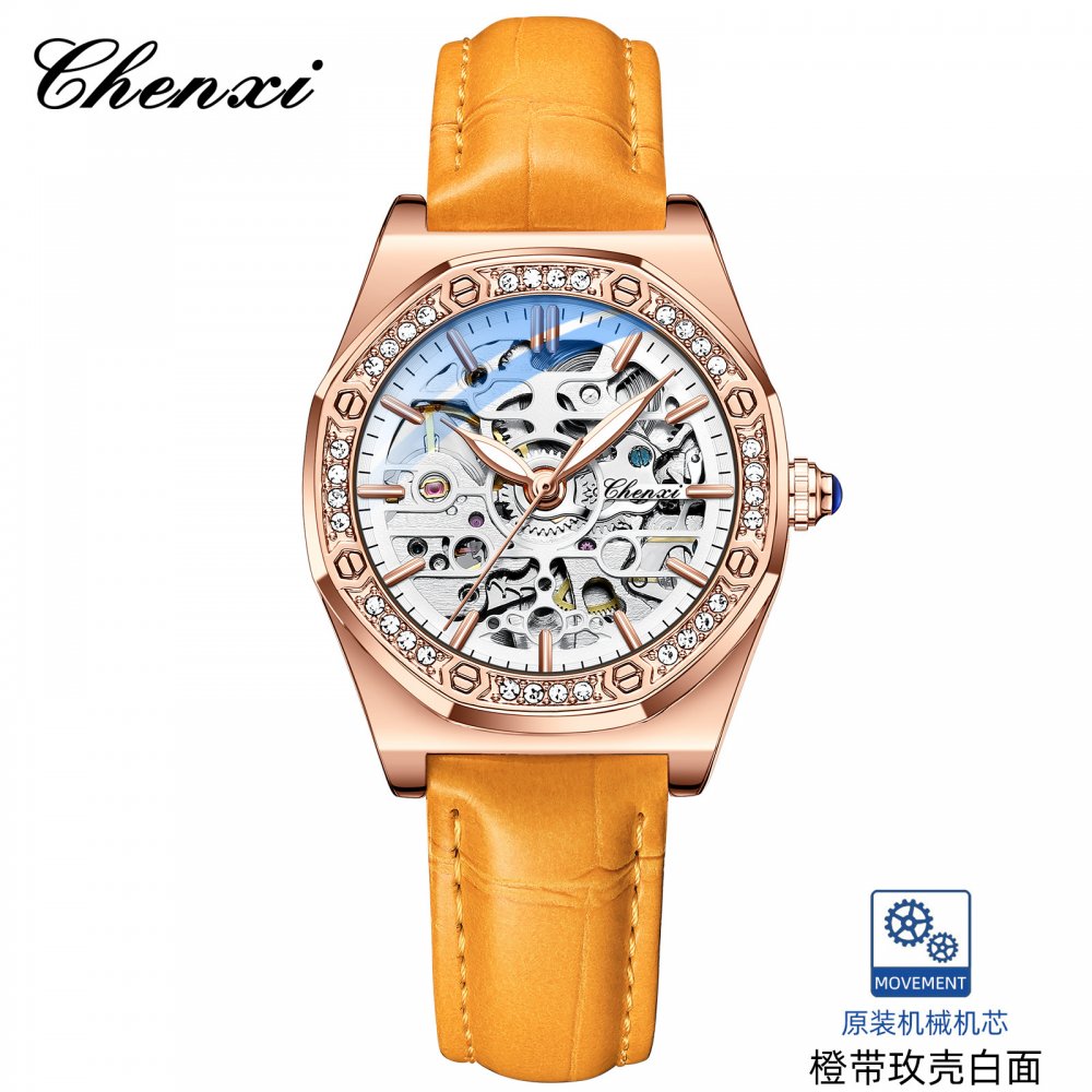 Chenxi popular watch for women solid steel strap ladies fashion with diamond hollow automatic mechanical watch waterproof lumino