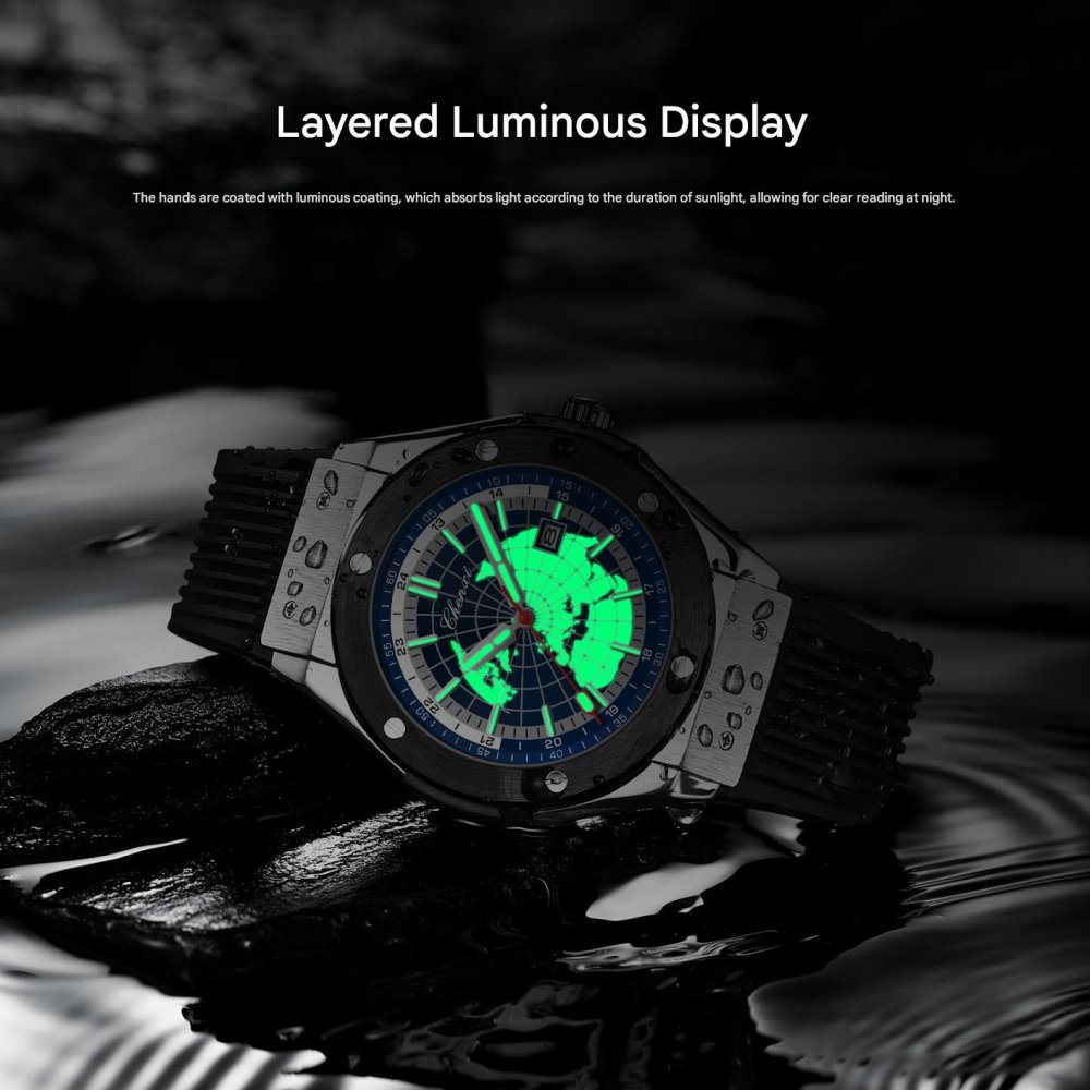 Chenxi Rivet Map Fashion Men's Watch Calendar Luminous Silicone Strap Trendy Quartz Watch