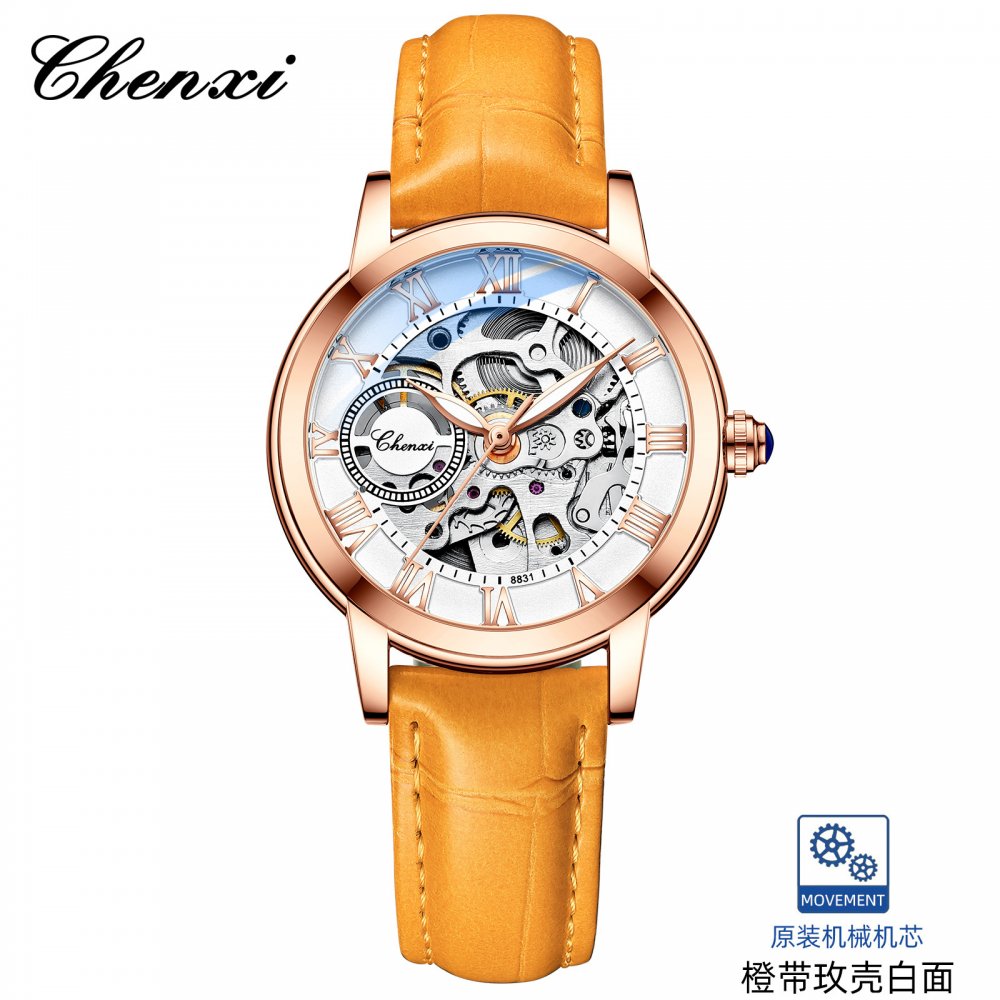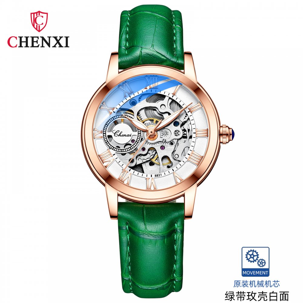Chenxi watch for women, ladies' casual luminous waterproof fully automatic hollow mechanical watch, popular mechanical watch for