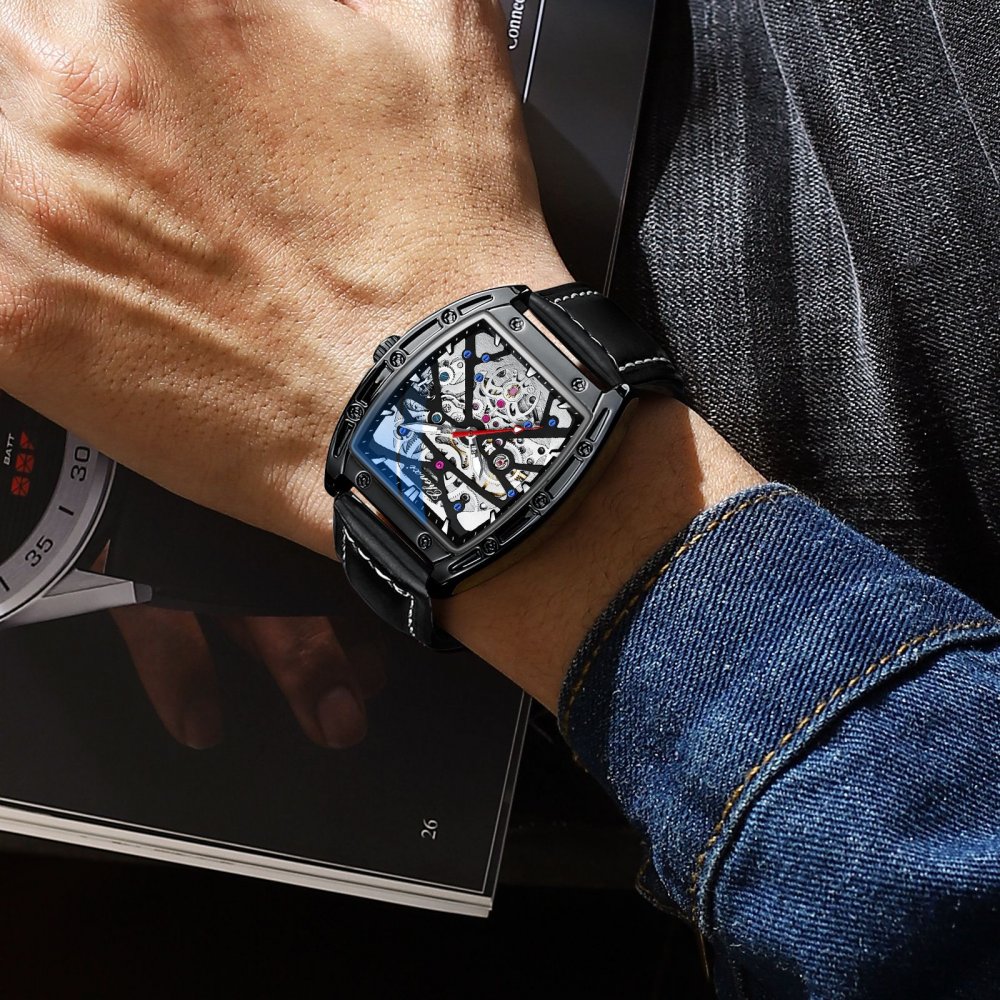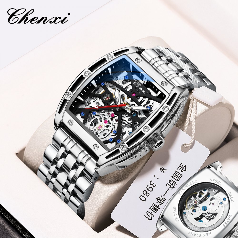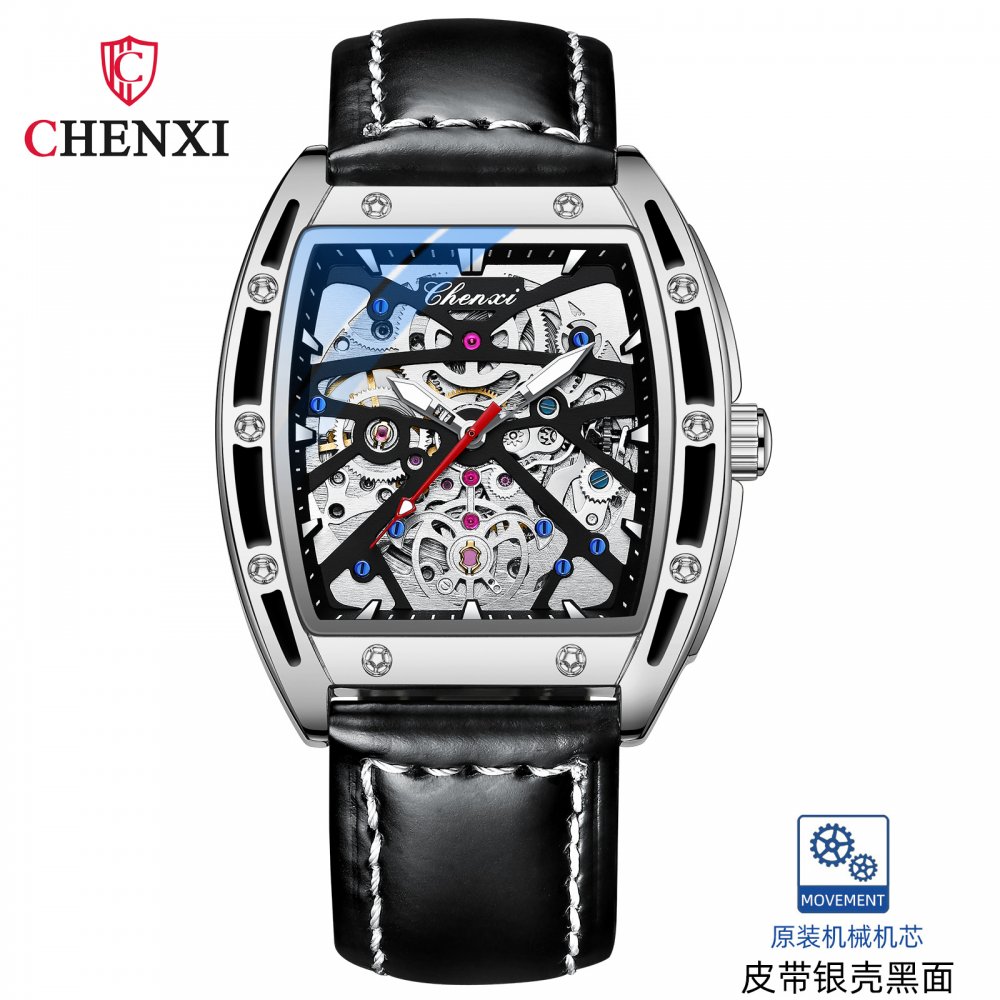 Chenxi watch men's mechanical wholesale barrel-shaped hollow automatic genuine leather waterproof luminous popular watch men