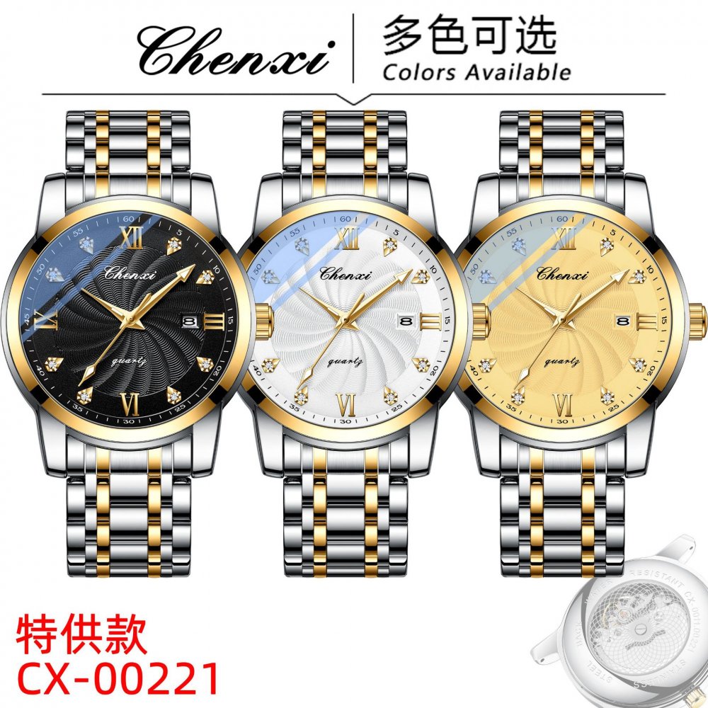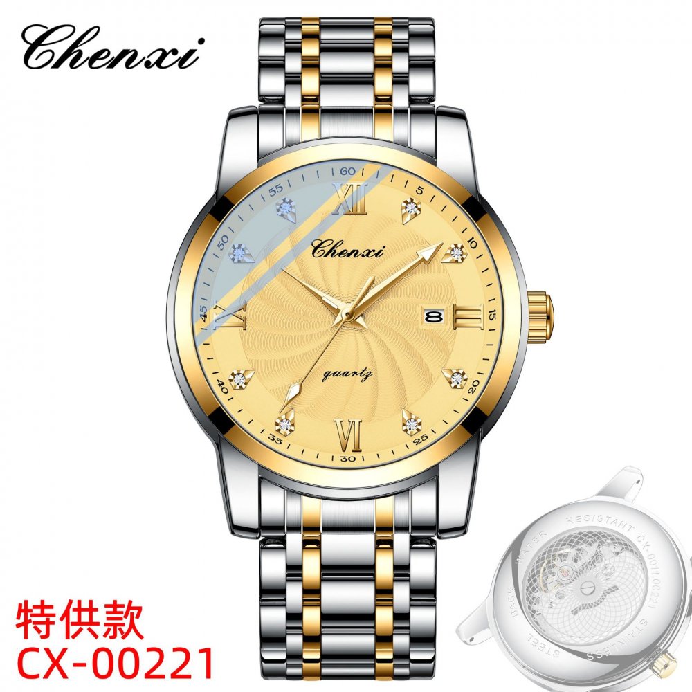 Chenxi watch men's watch sweep second movement transparent bottom men's watch luminous calendar steel belt model source manufact