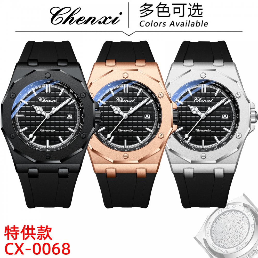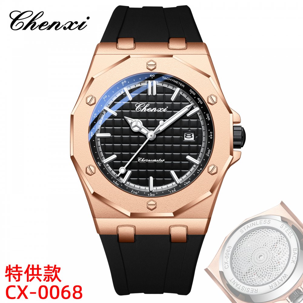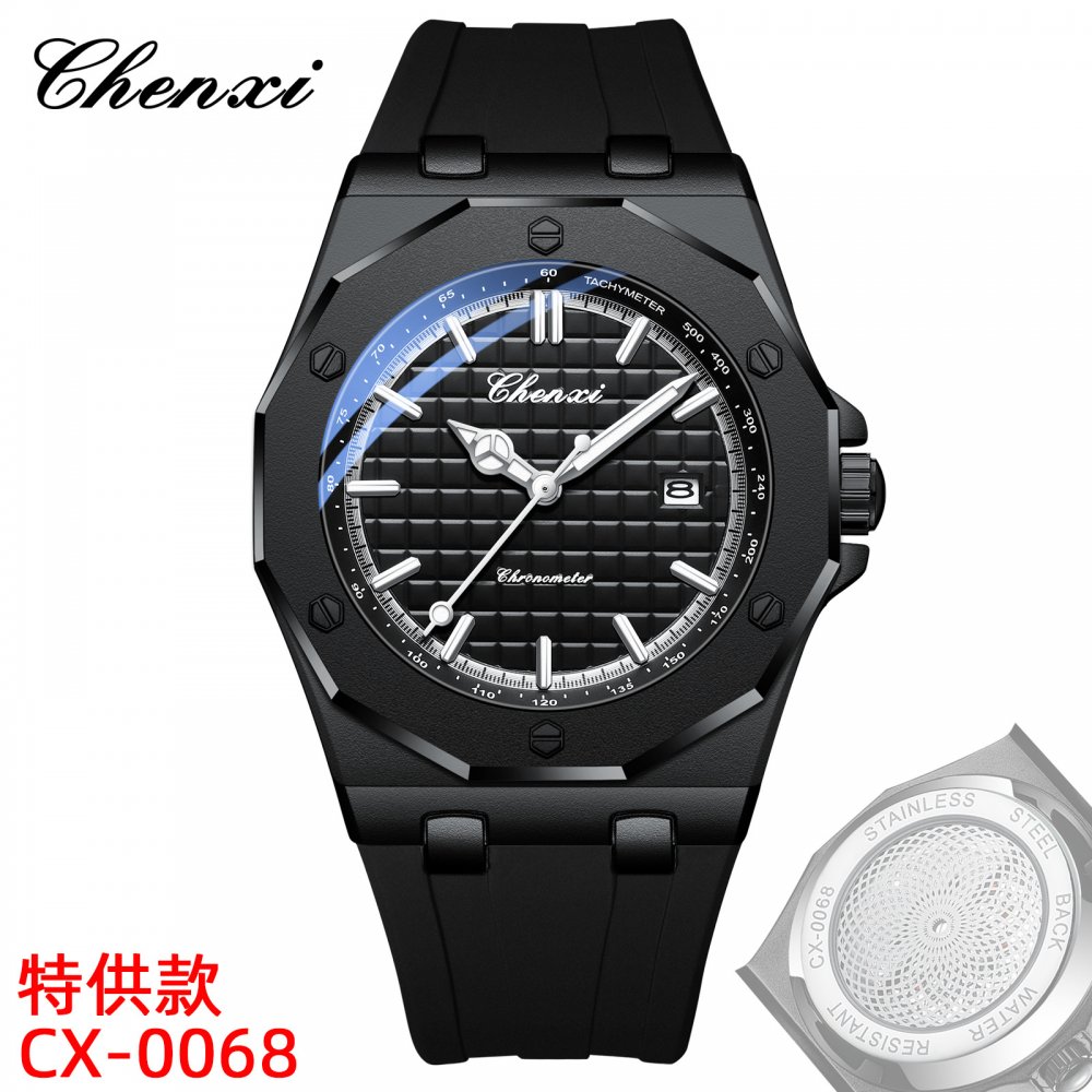 Chenxi watch men's watch sweep seconds through the bottom movement trendy fashion watch calendar luminous