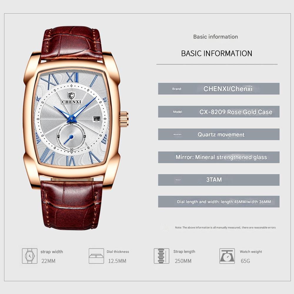 CHENXI watch square men's luminous calendar fashion quartz watch men