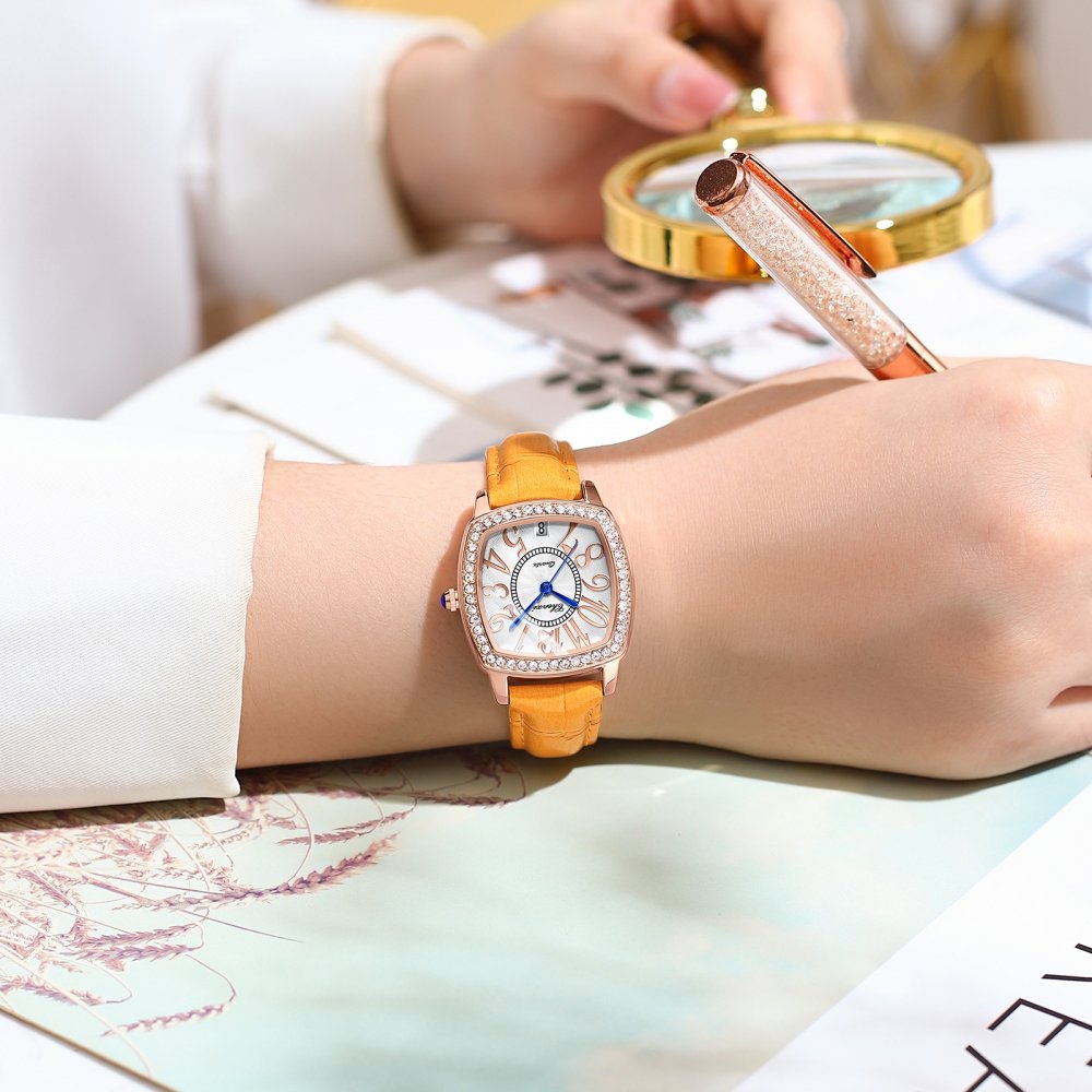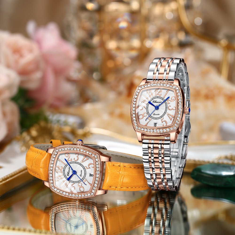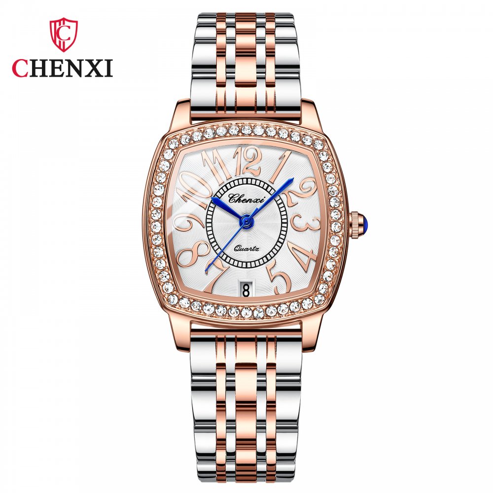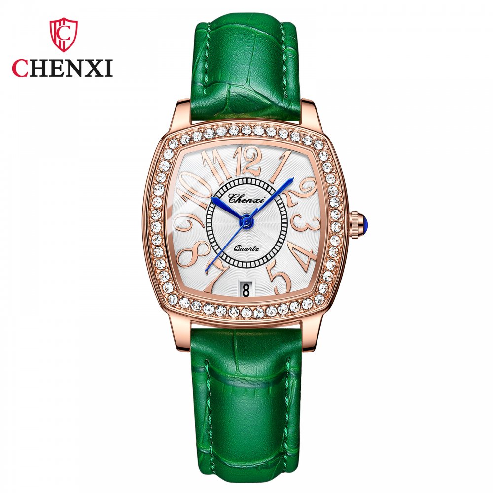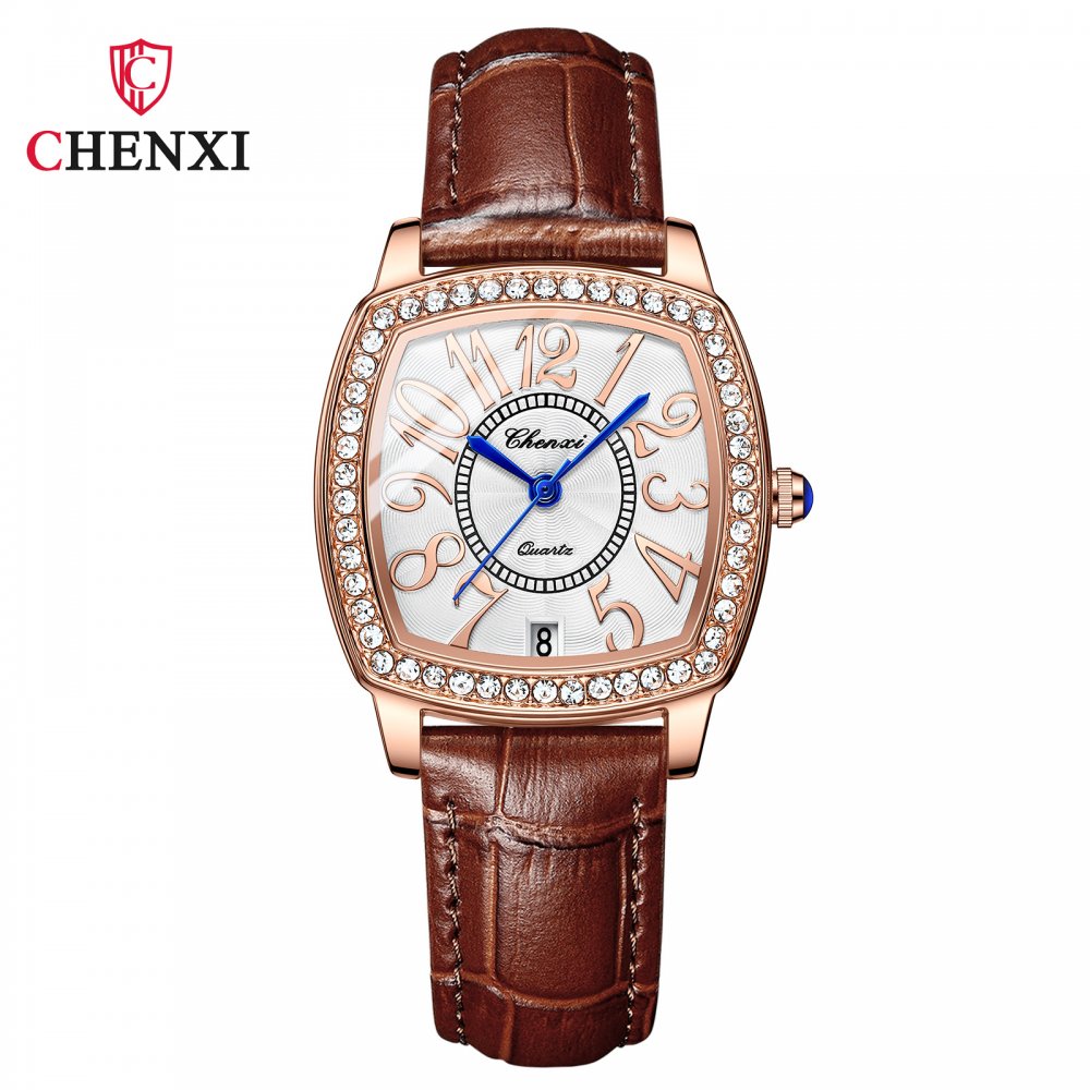 Chenxi Wine Barrel Square Fashion Watch Women Waterproof Digital Calendar Quartz Strap Diamond Genuine Leather Women's Watch