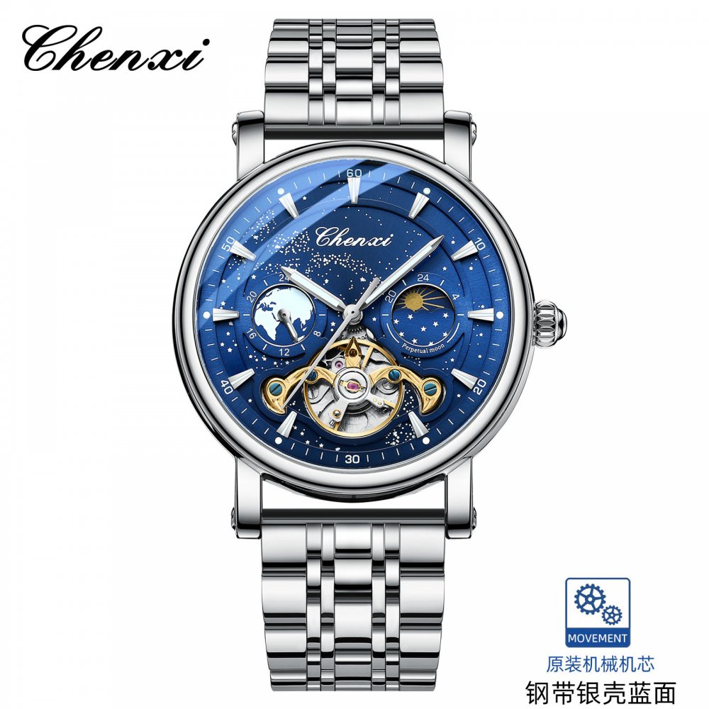 Chenxi Xinghe Moon Phase Hollow Flywheel Mechanical Watch Men's Watch Fully Automatic Luminous Business Leather Watch