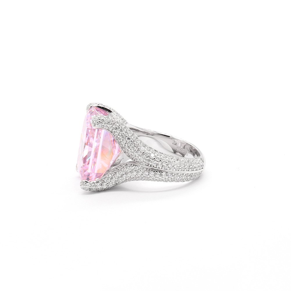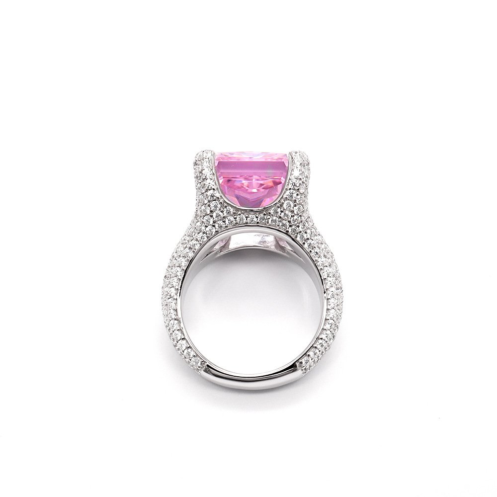 Classic European and American hot-selling 15CT vivid pink ice flower cut high carbon diamond ring