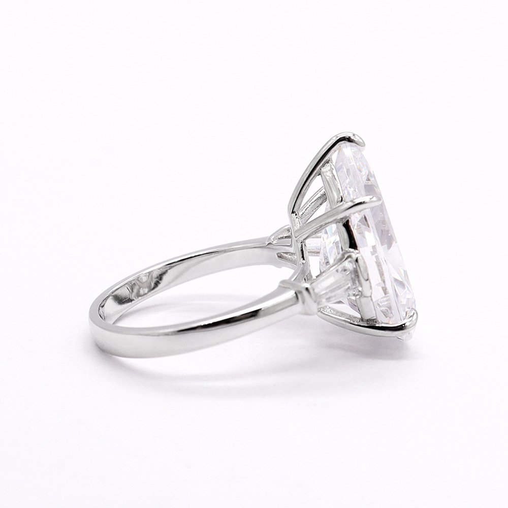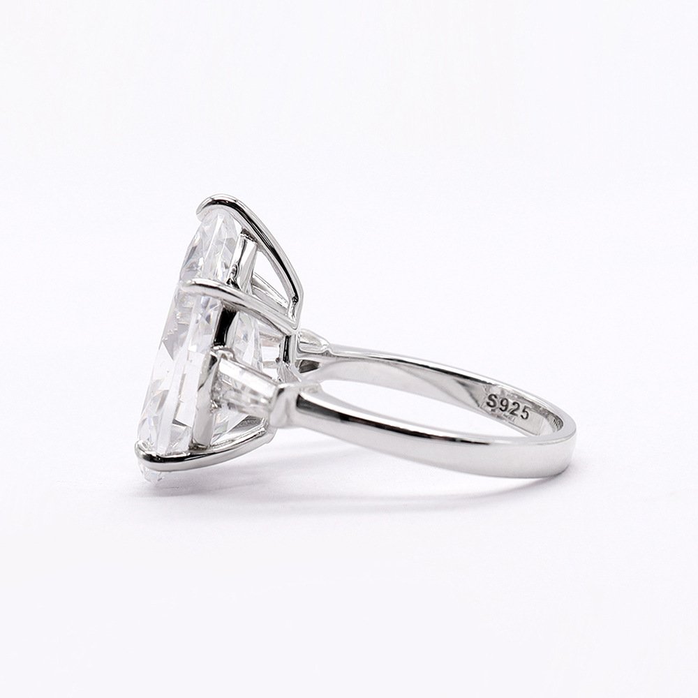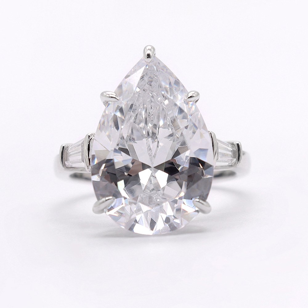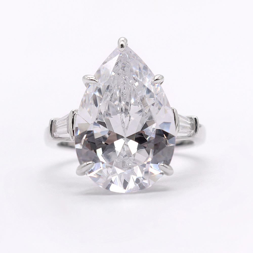 Classic Hot Sale 12ct Pear Shape White Synthetic Zircon 925 Silver Ring