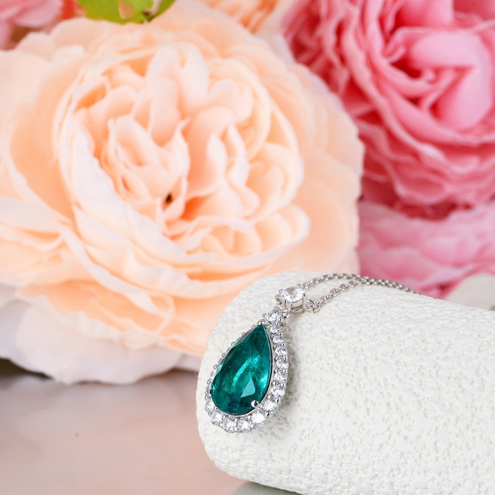 Cultivated Emerald S925 Silver Necklace Women's Pendant Light Luxury Simple Clavicle Chain