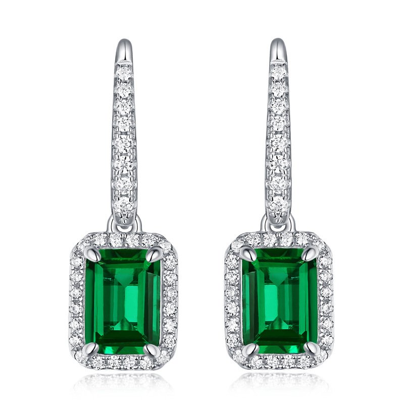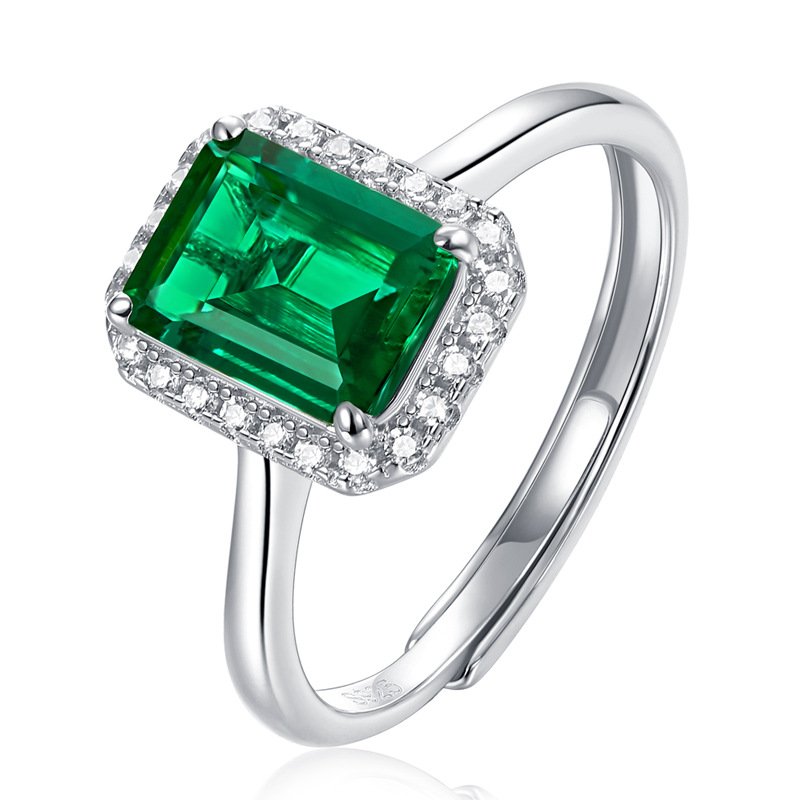 Cultured Emerald Three-Piece Ring, Necklace, Pendant, Earrings Jewelry Set