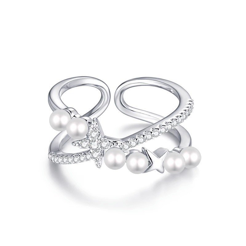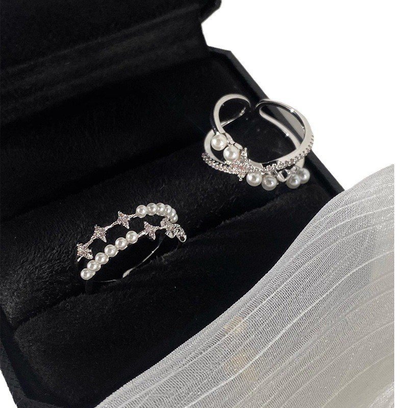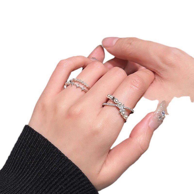 Double layer star pearl ring for women summer 2024 new fashion personalized ring opening adjustable index finger ring