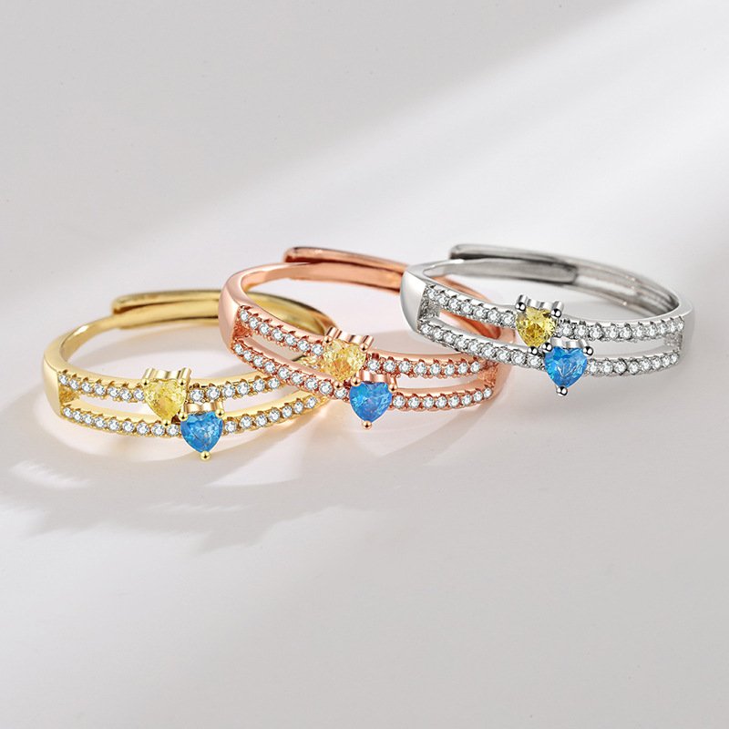 Double-layered love ring for women, fashionable and personalized commuting heart-shaped