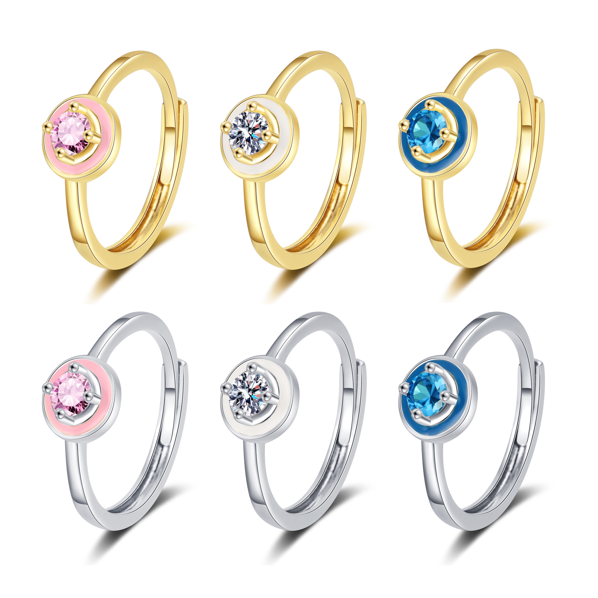 Enamel round moissanite diamond ring creative ring