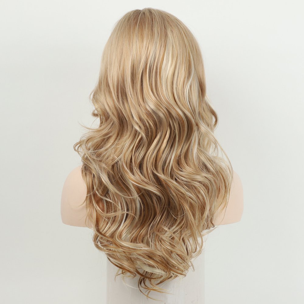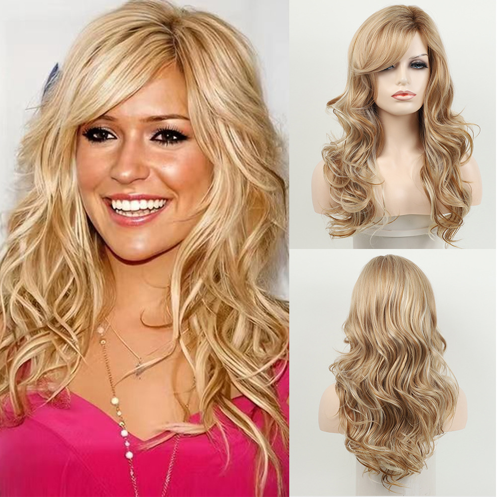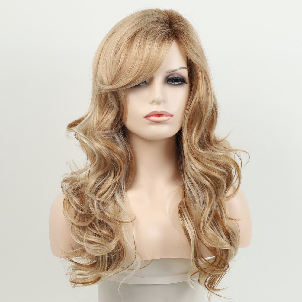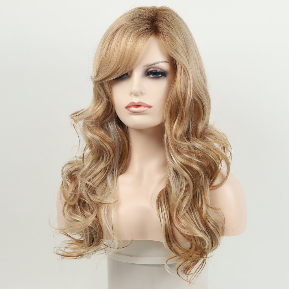 Fashion New Blonde Long Curly Hair Oblique Bangs Chemical Fiber Wig