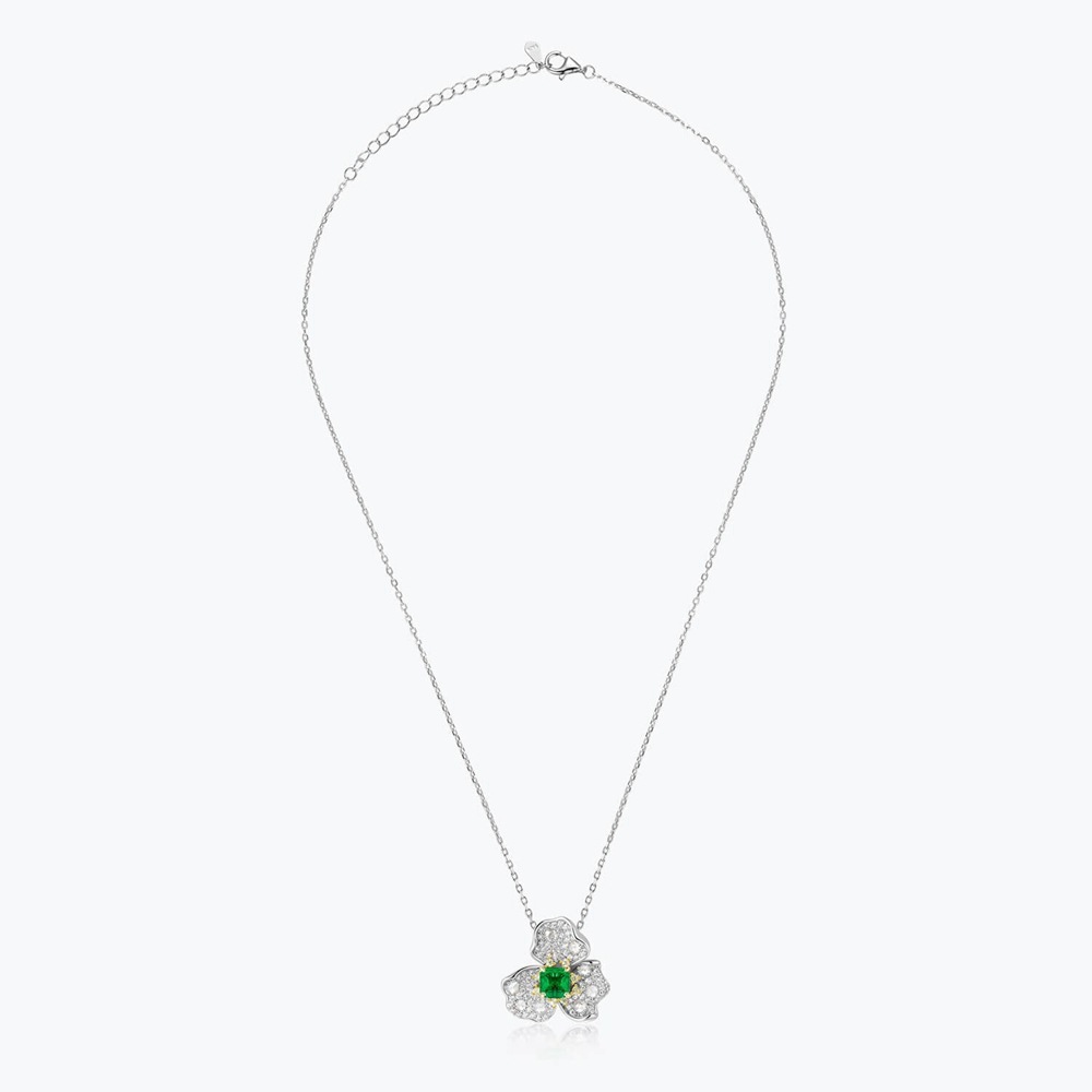 Fresh and sweet petal-shaped necklace for women inlaid with green sugar cube and green zircon