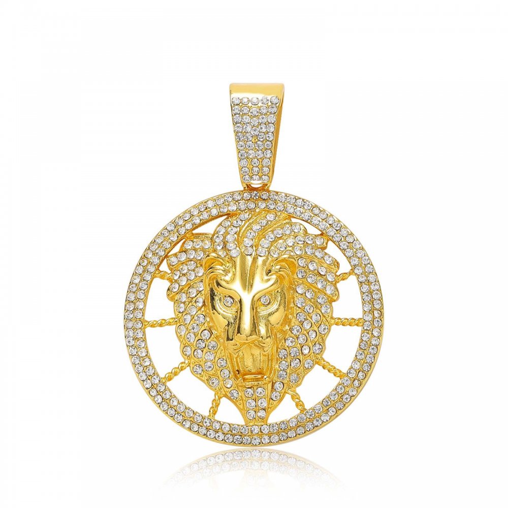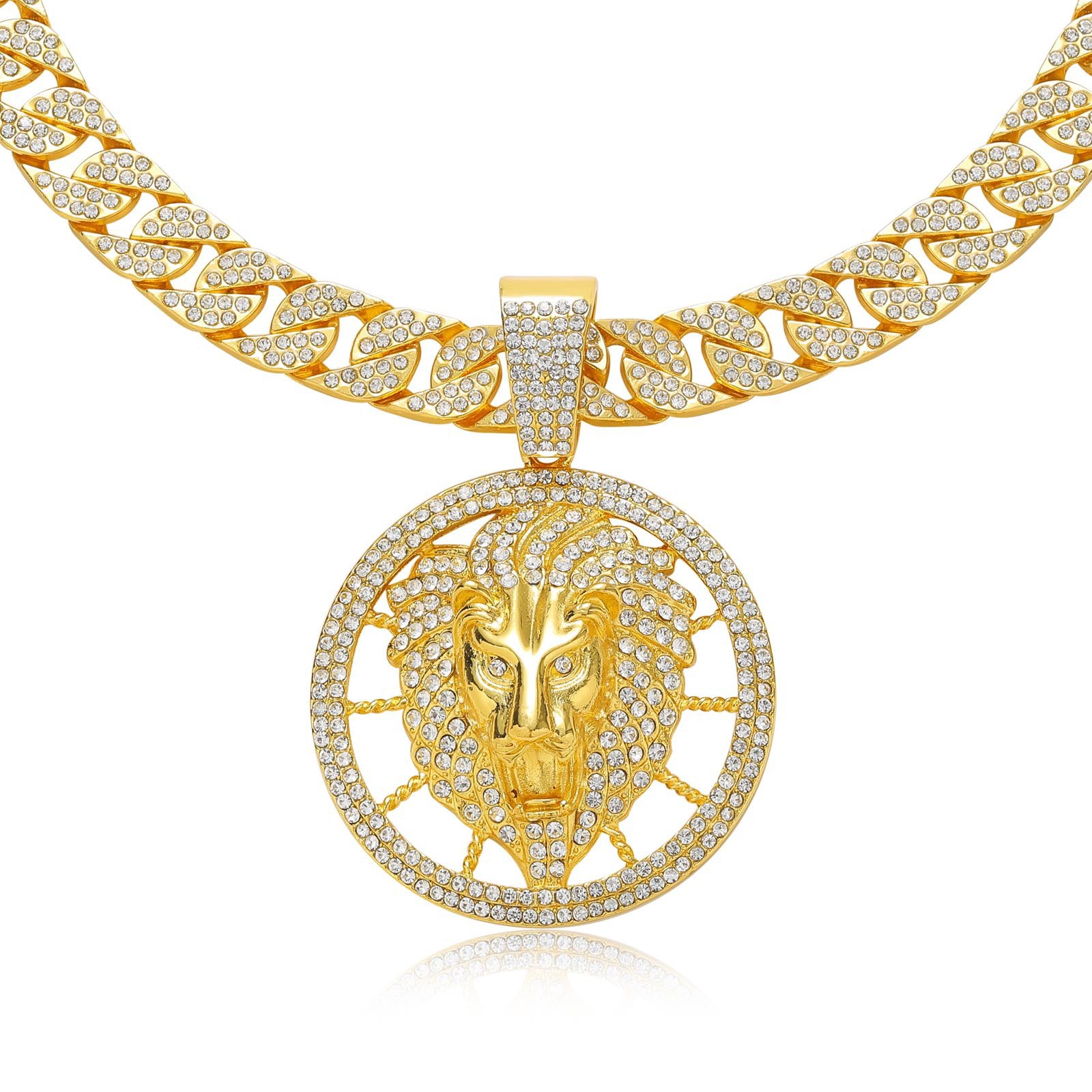 Full diamond lion head pendant retro domineering gold-plated Cuban chain hip-hop accessories