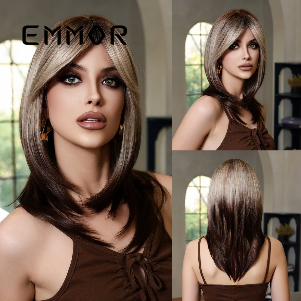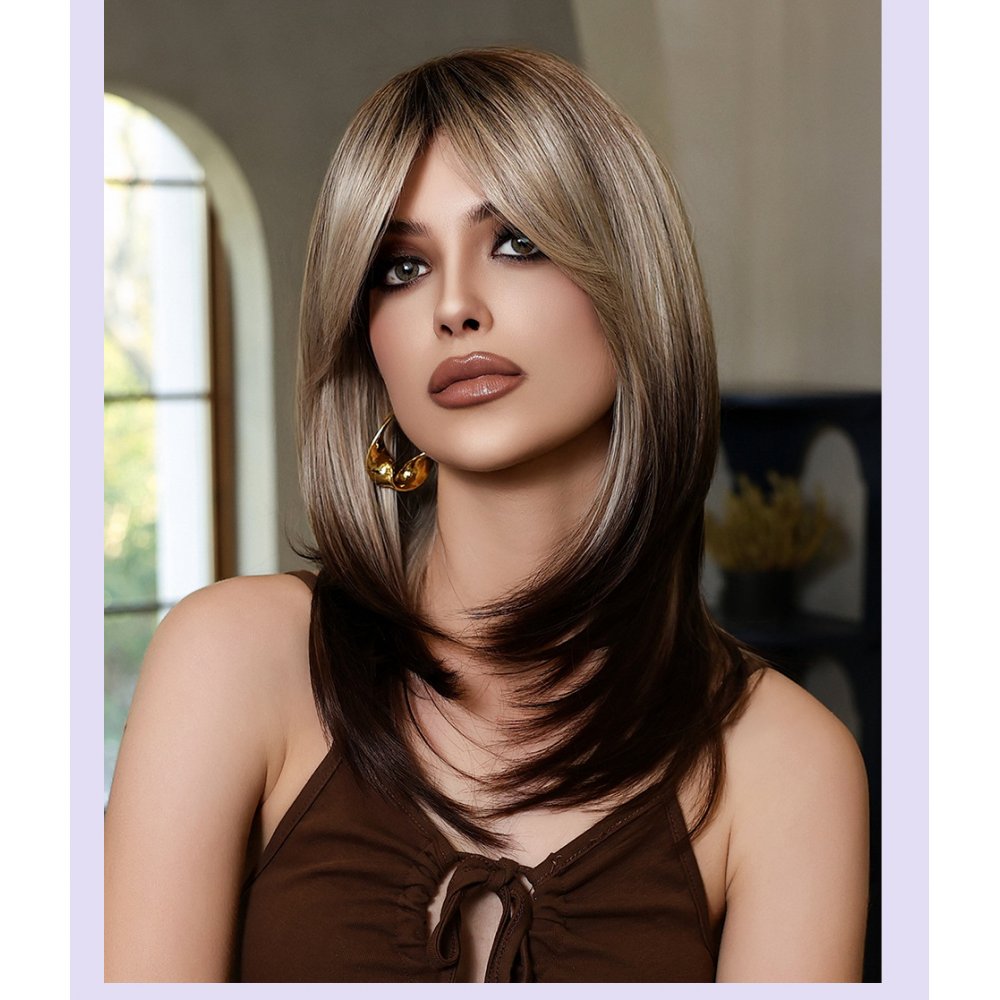 Gradient Gray Gold New Shoulder Length Straight Hair wig